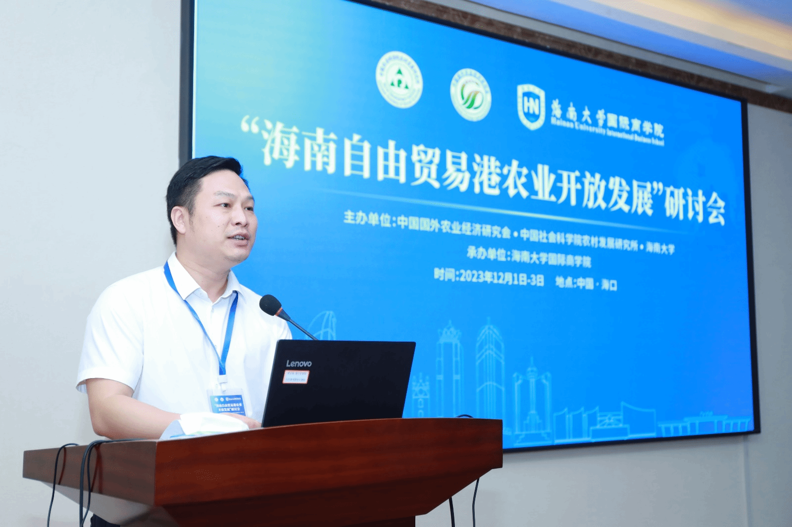 中国社会科学院农村发展研究所党委书记杜志雄致辞,他指出传统农业到综合性农业要运用好国际供应链,以国家战略为导向,推进中国农业农村开放发展。海南要立足区域优势,加强对国外农业经济的研究,争当农经学科对外交流的第一线。