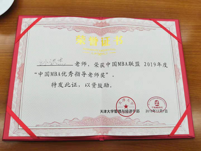 海南大学管理学院孙洪杰教授获“2019中国MBA优秀指导老师奖”