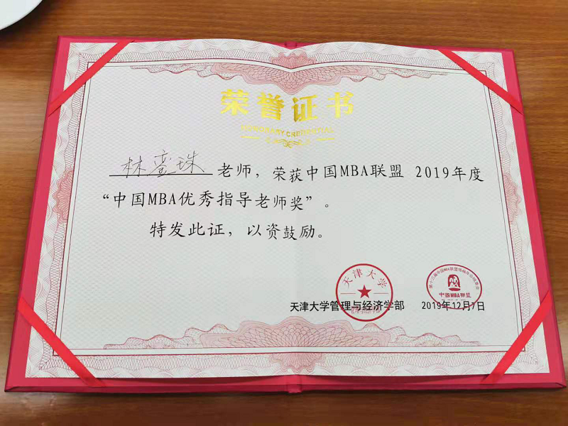 海南大学管理学院林銮珠教授获“2019中国MBA优秀指导老师奖”