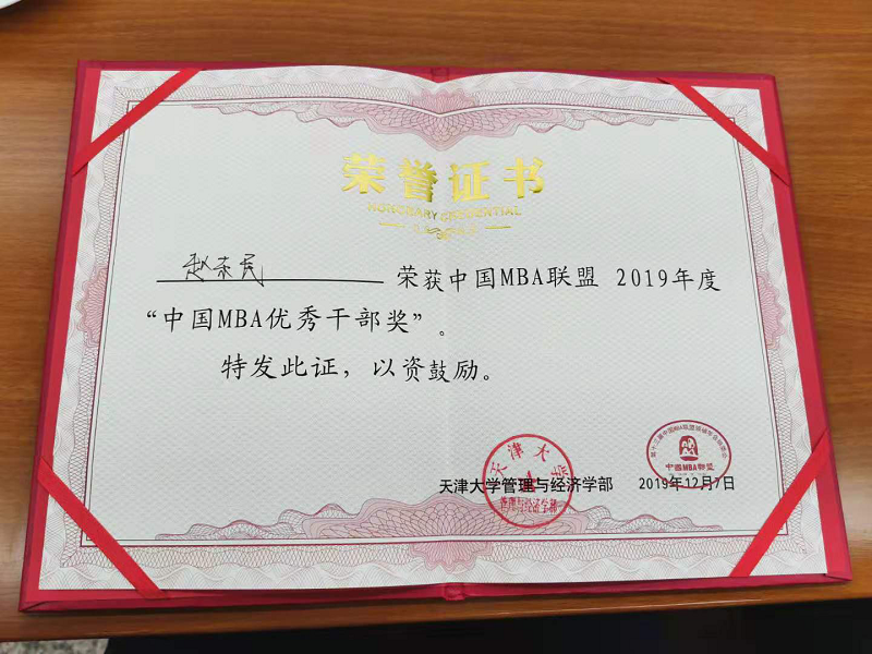 海南大学2018级MBA赵东民获“2019中国MBA优秀干部奖”