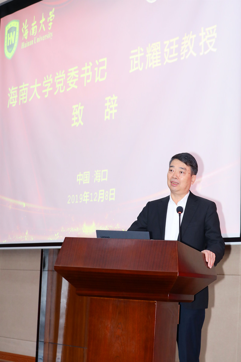 武耀廷教授代表海南大学全体师生对出席活动的各级领导、专家表示热烈欢迎。他表示,近年来,学校党委认真贯彻落实习近平总书记4·13重要讲话、在哲学社会科学工作座谈会以及在十九届四中全会上的重要讲话精神,学校高度重视哲学社会科学工作,并取得了较快发展和长足进步。他对省社科联将研究院正式列入海南省哲学社会科学重点研究基地及给予工商管理学科的大力支持、对英国杜伦大学商学院、对外经贸大学国际商学院两家合建单位的大力支持和以南方航空海南分公司、中和药业为代表的海南知名企业积极参与筹备工作等表示衷心地感谢。他强调,今后海南大学将始终牢记习近平总书记“要支持海南大学创建世界一流大学”的重要嘱托,抓住“部省合建”海南大学和“聚全省之力办好海南大学”的重大机遇,奋进推进世界一流学科和国内一流大学建设工作,学校将按照省社科联的指示和要求,进一步加大对研究院的支持力度,扎实推进研究院建设,积极整合资源,努力在自贸区(港)公司治理研究方面走在全国前列,为海南自贸区(港)建设做出应有的贡献,不辜负省社科联、合建单位对海大的厚爱和殷切希望。