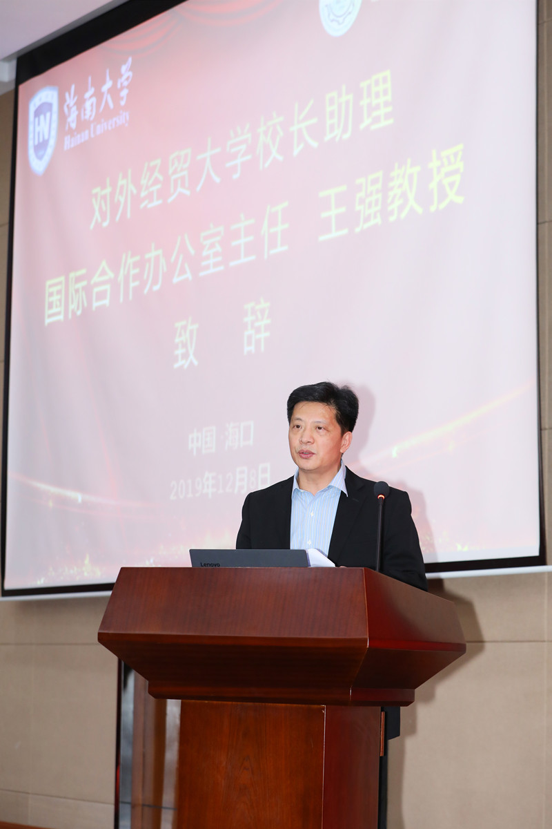 王强代表对外经贸大学对研究院的成立表示祝贺,他强调,“海南省公司治理研究院”是两校开展实质性对口合建工作的第一枚硕果,标志着两校合作的实质性落地。未来对外经贸大学与海南大学将以“双一流”建设为目标,以服务国家战略和地方经济社会发展为导向,通过对口合作,致力在人才培养、科学研究和社会服务能力方面得到提升。