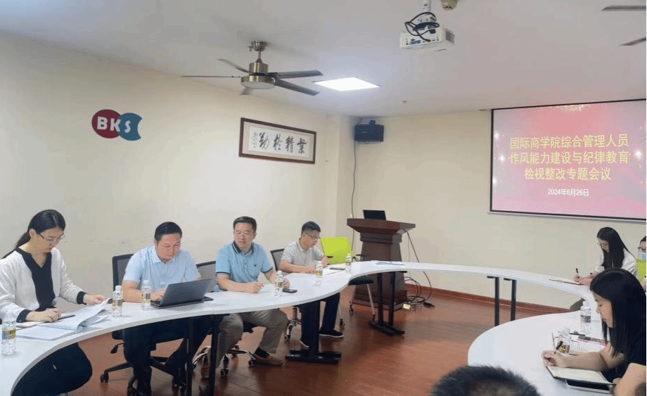 2024年6月26日,国际商学院在社科楼B319召开综合管理人员纪律教育检视整改与作风能力建设专题会议。副院长付景涛、童泽林,学院党委副书记、纪委书记(兼)王静出席了此次会议,学院全体综合管理人员参加会议。