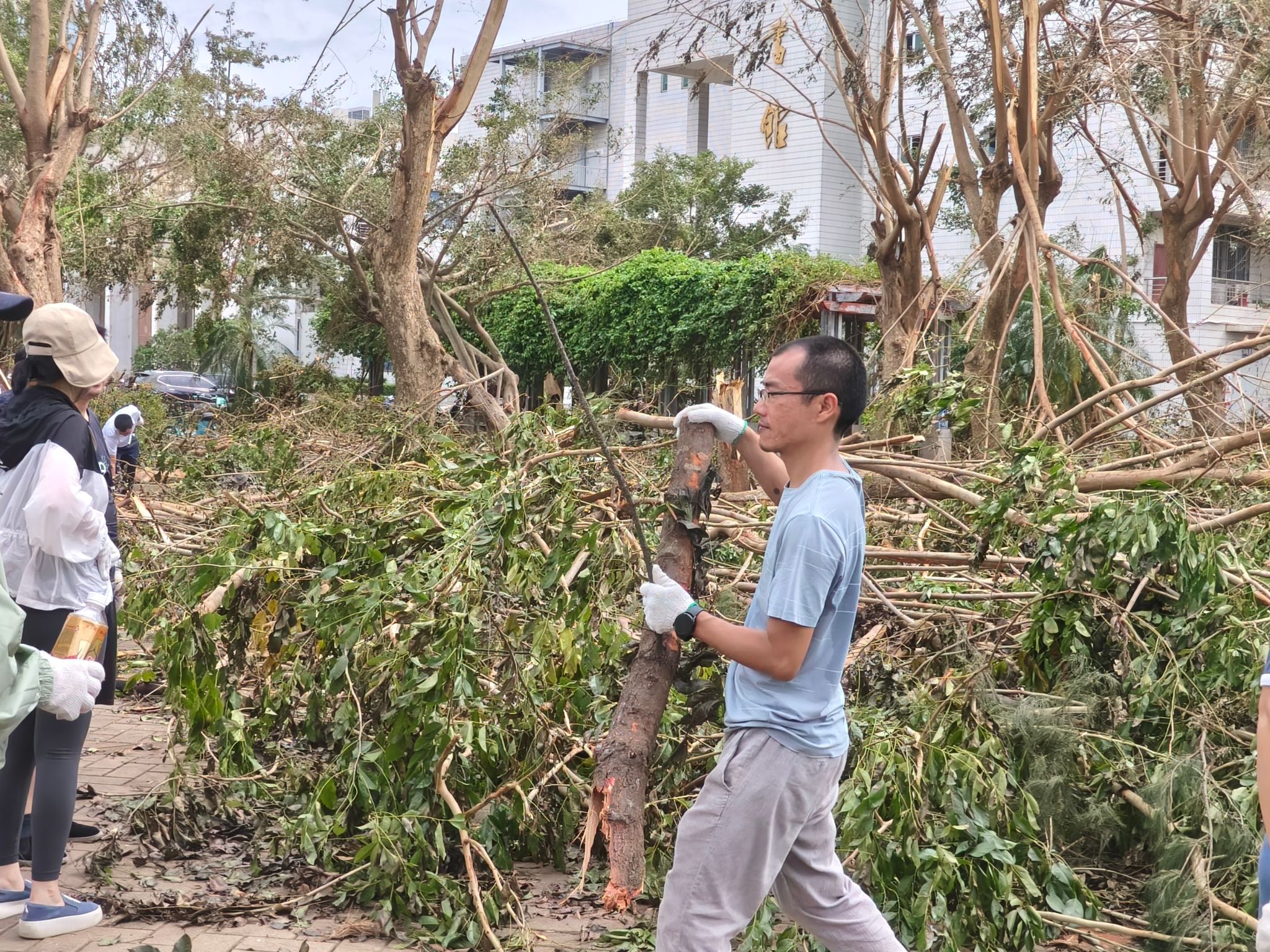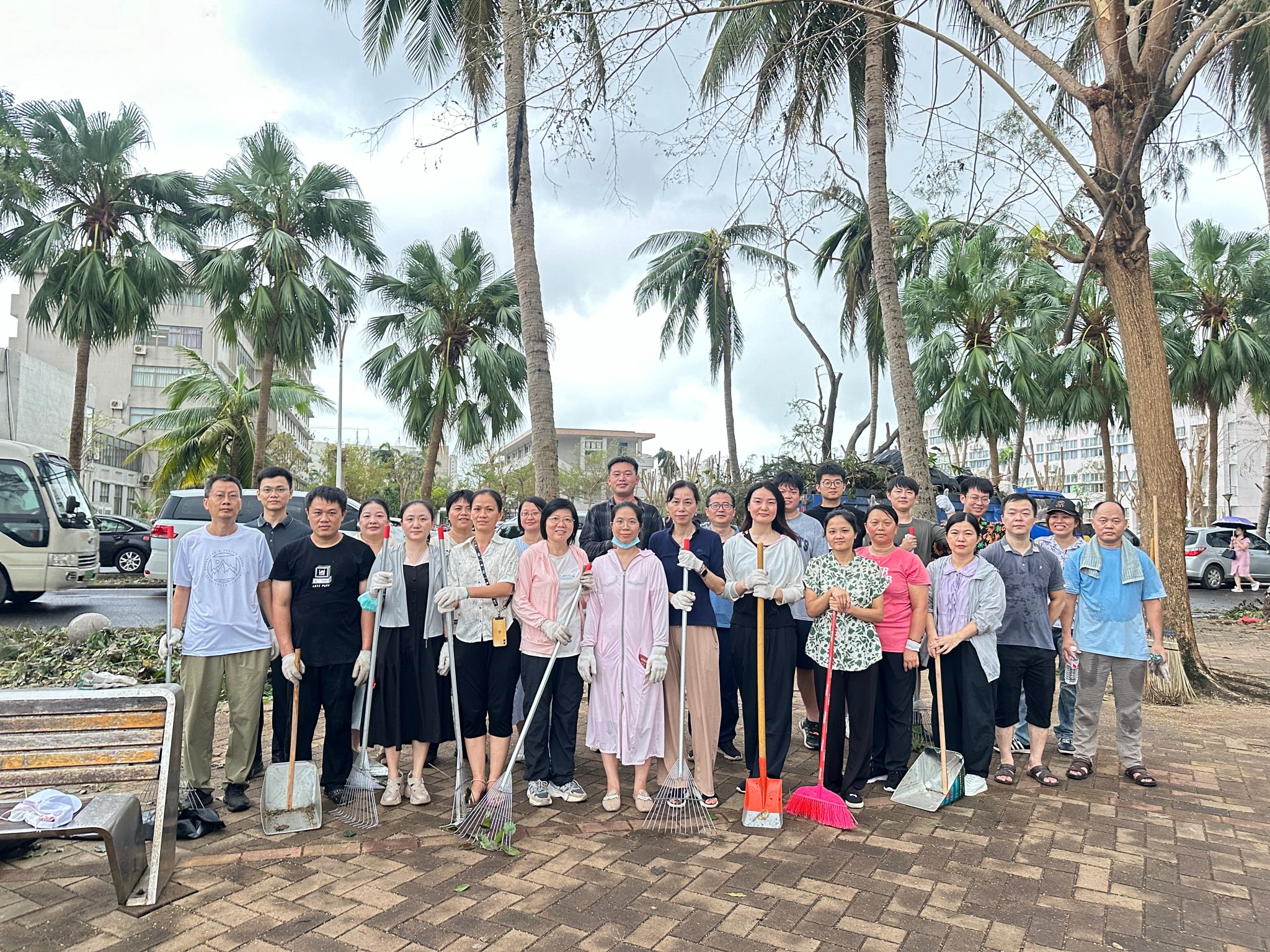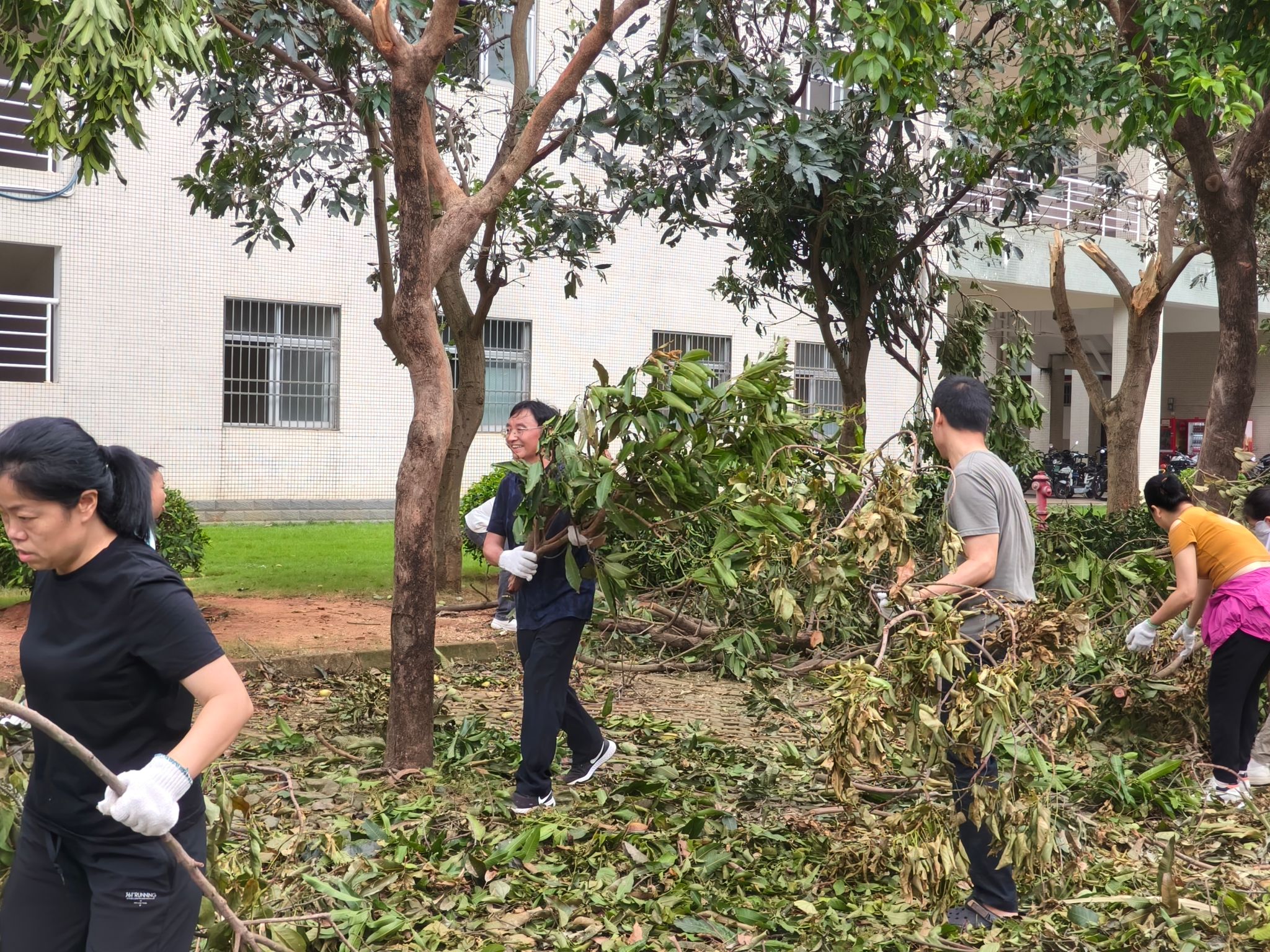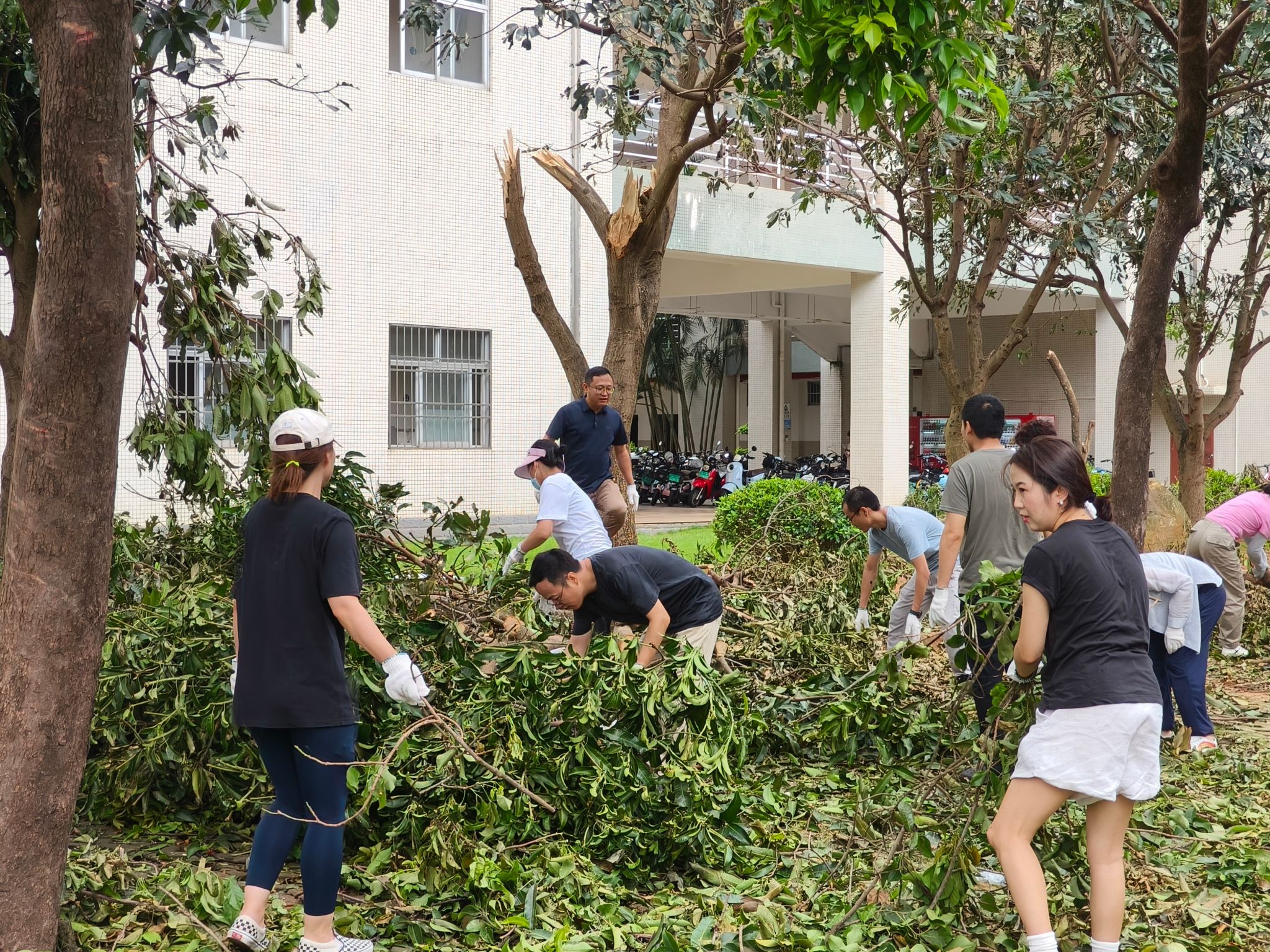 面对台风肆虐留下的满目疮痍,国际商学院迅速响应,组织全院师生投入到紧张的灾后重建工作中。从办公楼宇的清理到教学场地的修缮,从道路的疏通到周边环境的整治,每一处都留下了师生们辛勤劳动的身影,每一步都凝聚着师生们的汗水与心血。在这场没有硝烟的战斗中,大家心手相连,共同守护着这片属于我们共同的家园。这份对家园的热爱与责任,不仅让校园迅速恢复了往日的宁静与秩序,更在每个人心中种下了团结与希望的种子,激励着大家继续前行。