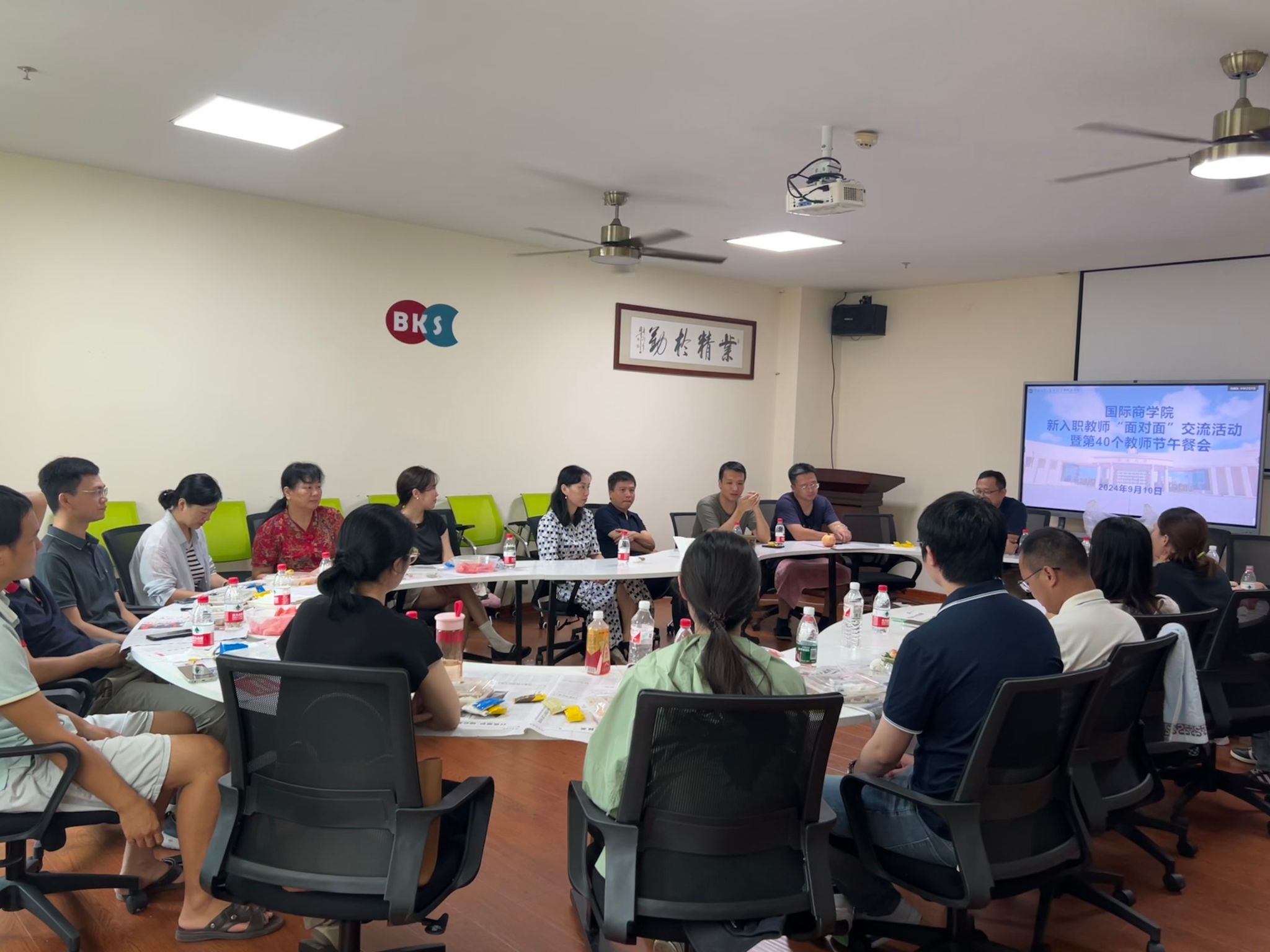 9月10日中午,刚结束上午的清障工作,学院在社科楼B319举办新入职教师“面对面”交流活动暨第40个教师节午餐会。国际商学院院长唐宁玉,院党委副书记、纪委书记(兼)王静,副院长许能锐、付景涛、赵达、孙鹏出席活动,学院各系、办负责人及6位新入职教师参加活动。