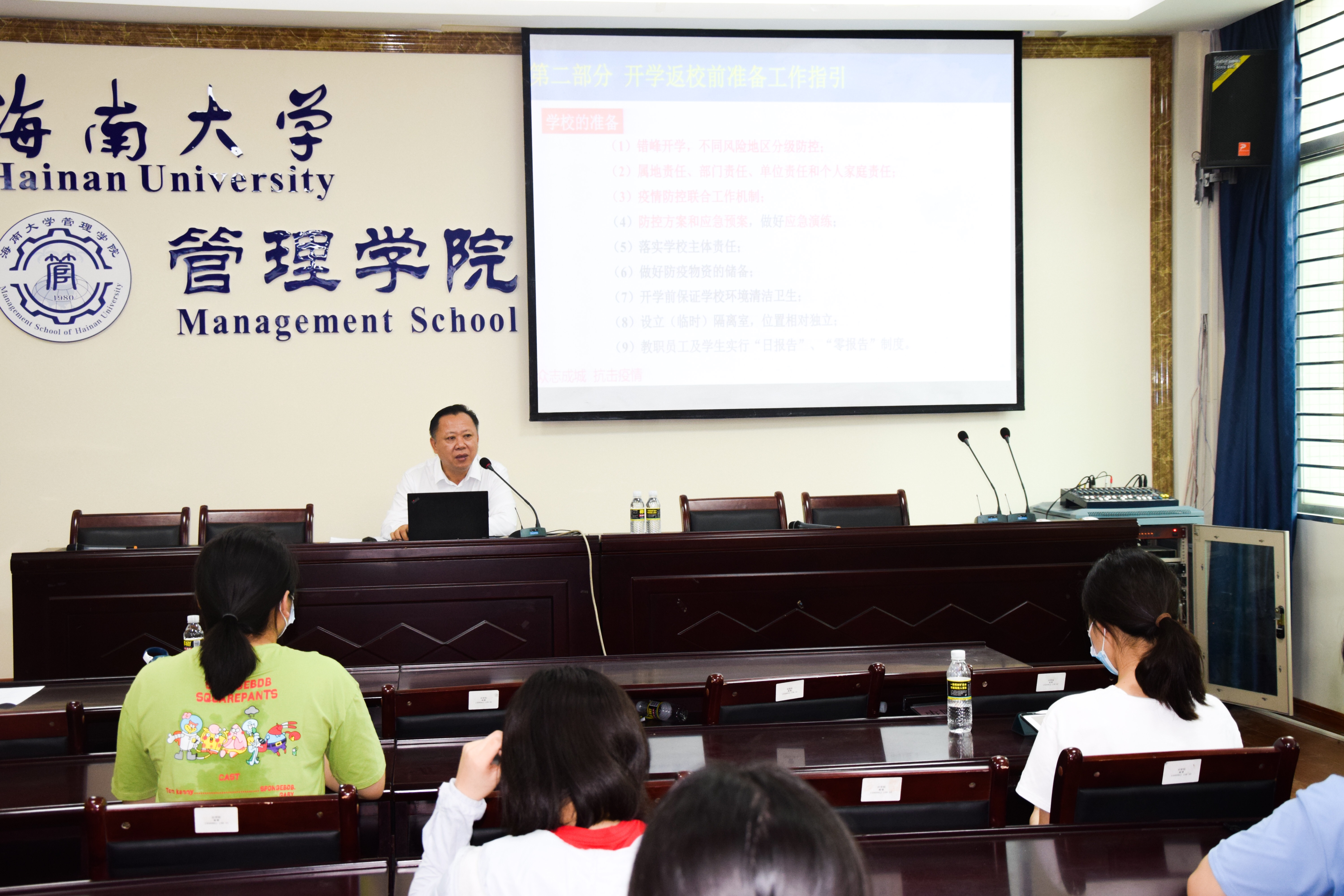 5月22日下午,管理学院2020年春季学期“开学第一课”在社科楼B112会议室举行。党委书记邢谷川为管理学院本科生、研究生讲授“开学第一课”。党委副书记易振、全体辅导员参加开学第一课。