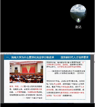 赵达副院长详细介绍了深化完全学分制改革的核心内容,包括完善专业核心课程建设、优化选课修课方案和免修免听实施方案、学生课程考核管理方案、实验教学管理方案、学生自主选择专业和完善教学工作机制建设等内容。他强调,深化完全学分制改革要加强教风学风建设,努力营造“严谨治学、追求卓越”和“诚实守信、激情探索”的校园氛围,打造“教在海大、学在海大”品牌。他鼓励学业导师积极引导学生进行个性化成长学习。
