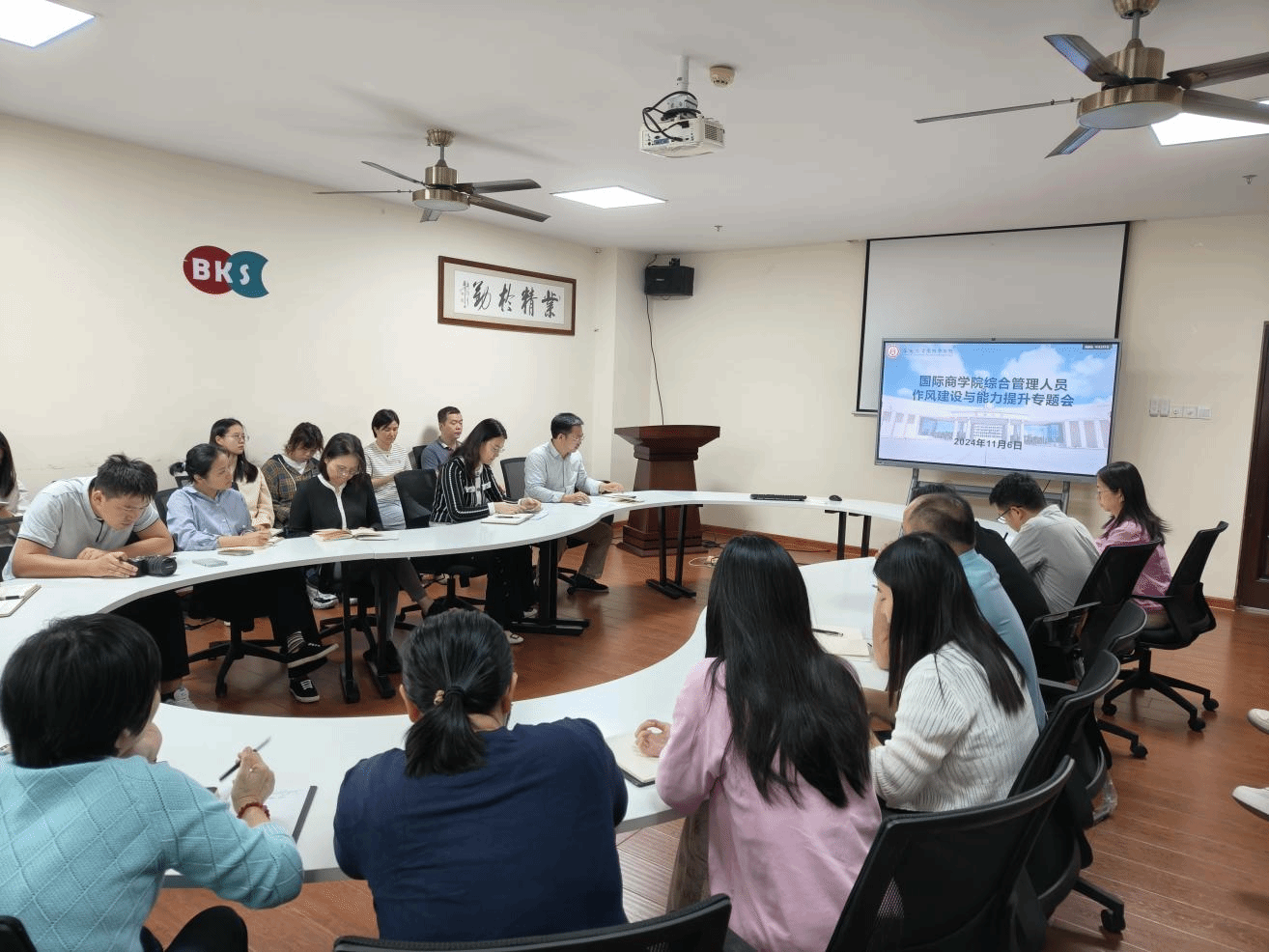 2024年11月6日上午,学院在社科楼B319会议室召开了综合管理人员作风建设与能力提升专题会。学院副院长付景涛,学院党委副书记、纪委书记(兼)王静出席会议,学院各系、办(中心)行政人员参加会议。