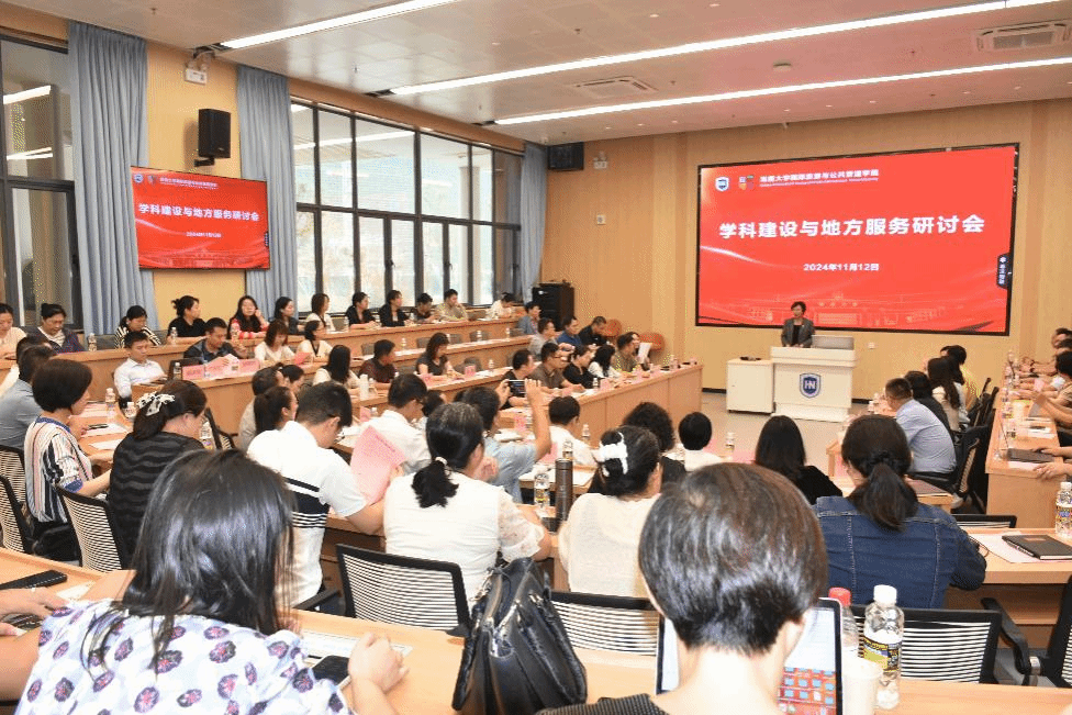 2024年11月12日下午,国际商学院唐宁玉院长、南国芳书记带领学院领导班子及学科点负责人在海南大学观澜湖校区A101教室参加由观澜湖校区组织的学科建设与地方服务研讨会。中共海南省委政策研究室副主任刘旭、海南省旅文厅政策法规处一级调研员李红、海口市龙华区副区长龙靖滨等政府及企事业单位人员,海南大学高佃恭副校长,学校人文社科处、研究生院、发展规划与学科建设处及人事处等职能部门相关人员、国际旅游与公共管理学院领导班子、教师代表及行政人员出席会议。会议由国际旅游与公共管理学院王琳院长主持。