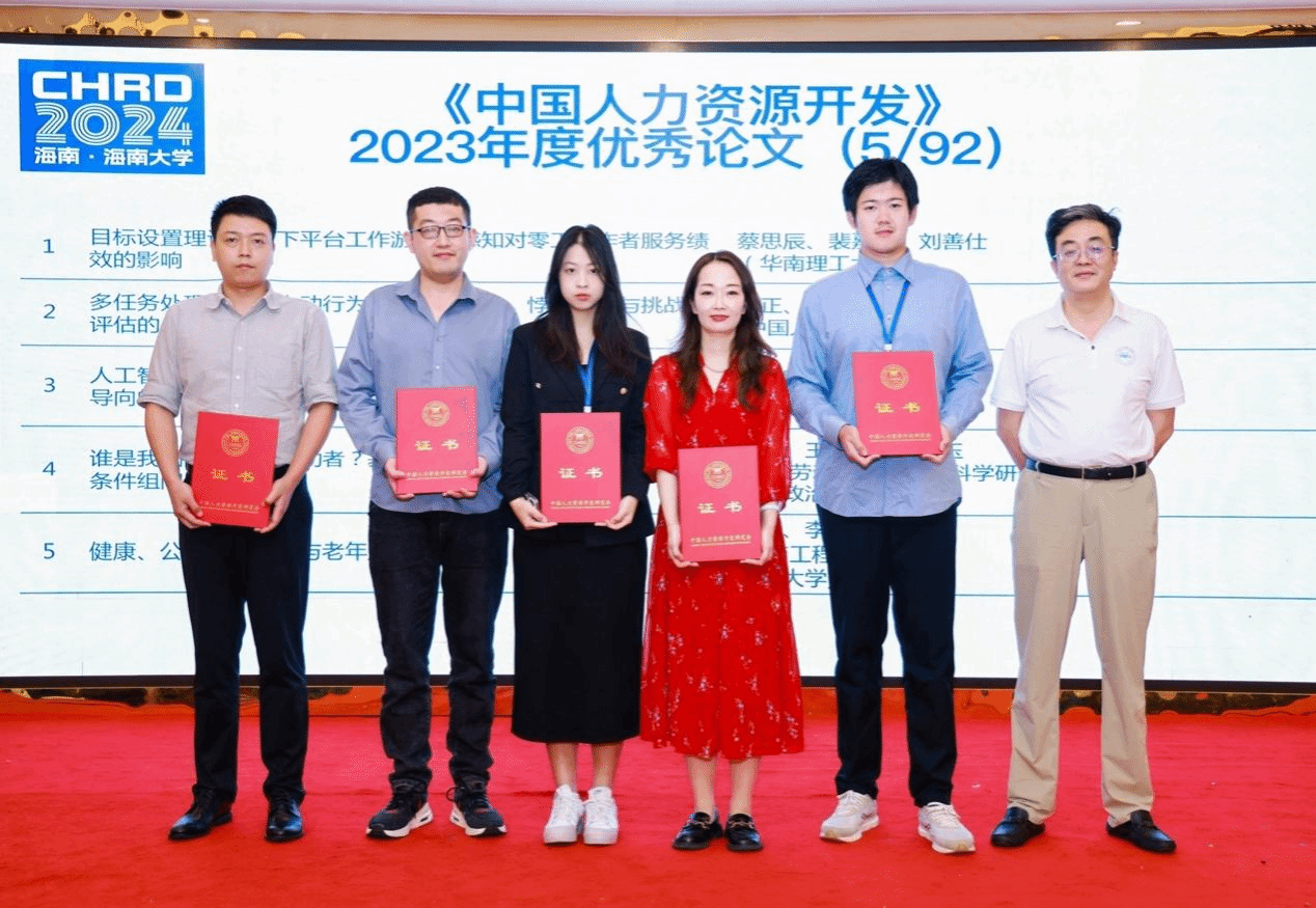 本次年会设立优秀会议论文奖,经过专家多轮匿名评审选出12篇优秀会议论文,由中国人力资源开发研究会副会长、《中国人力资源开发》常务副主编胡继申和伟德bv1946官网院长唐宁玉教授为12偏优秀会议论文作者颁奖。同时,还评选出《中国人力资源开发》2023年发表的5篇优秀论文,由中国人力资源开发研究会会长、《中国人力资源开发》主编欧晓理为获奖论文作者颁奖。