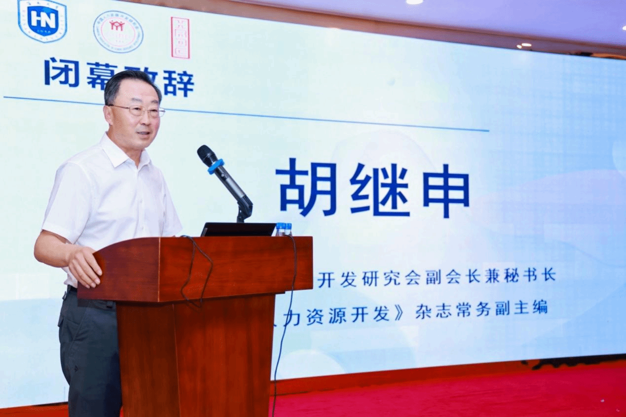 颁奖仪式结束后,中国人力资源开发研究会副会长兼秘书长、《中国人力资源开发》杂志常务副主编胡继申进行闭幕式致辞并作会议总结。他高度评价了本次年会,认为体现出参与广泛、交流深入、守正创新的特点,学术年会不仅拓展了参与者的视野,而且加深了相互间的理解和不同学术观点的交流。他指出,未来应进一步更新和凝练人力资源开发的研究方向,积极推广优秀论文,共同提升杂志质量。最后,他向《中国人力资源开发》杂志社、承办单位伟德bv1946官网和Credamo见数,以及向大会提供帮助的各界人士表示衷心的感谢。