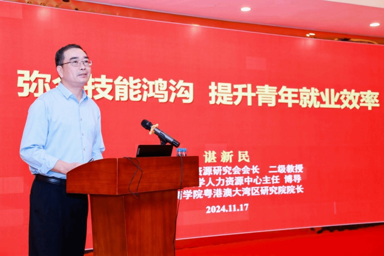 华南师范大学经济与管理学院谌新民教授首先作了题为“数字经济时代下青年高质量职业发展”的主题报告,概述了其研究团队关注的四大议题,包括青年就业挑战、粤港澳大湾区就业流动性与人力资本、技术短缺与就业不稳定、灵活就业与长期就业质量,为研究青年职业发展提供了深刻见解。