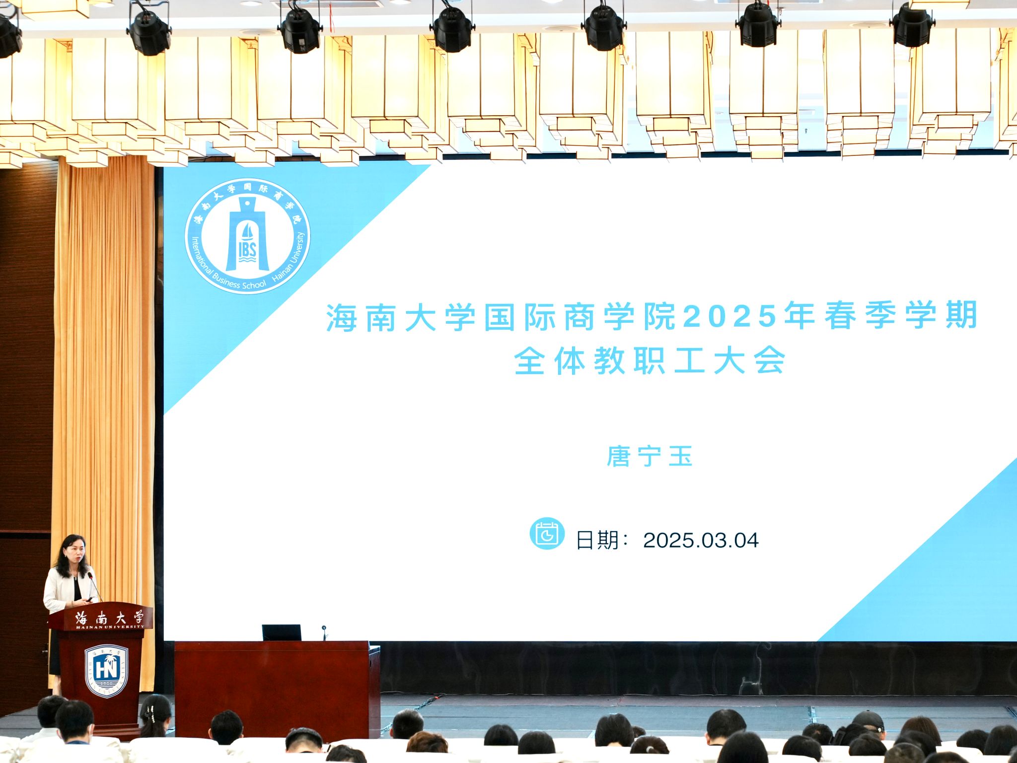 院长唐宁玉的讲话着重围绕挑战、机遇和行动三个关键词。她指出,学院发展态势良好,成绩突出但也面临着内外多种挑战,但挑战也与机遇并存,要把握住人工智能、自贸港建设等机遇,发挥广大教师的科研教学潜力。2025年,学院将学科建设作为核心抓手,为新一轮博士点申报工作做好准备。同时,学院将加大人才引进力度,引育并举建设更强大的师资队伍。她鼓励大家充分利用人工智能等技术推动商科教育创新。