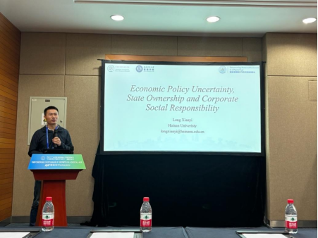 以“Corporate Social Responsibility and ESG”为主题的论文展示和以“社会责任与绿色管理的”为主题的圆桌讨论会上,国际商学院龙贤义副教授分别汇报了题为“Economic Policy Uncertainty, state ownership and Corporate Social Responsibility”和“内外部社会责任差距与员工不道德行为:基于资源保存理论的视角”的研究论文。