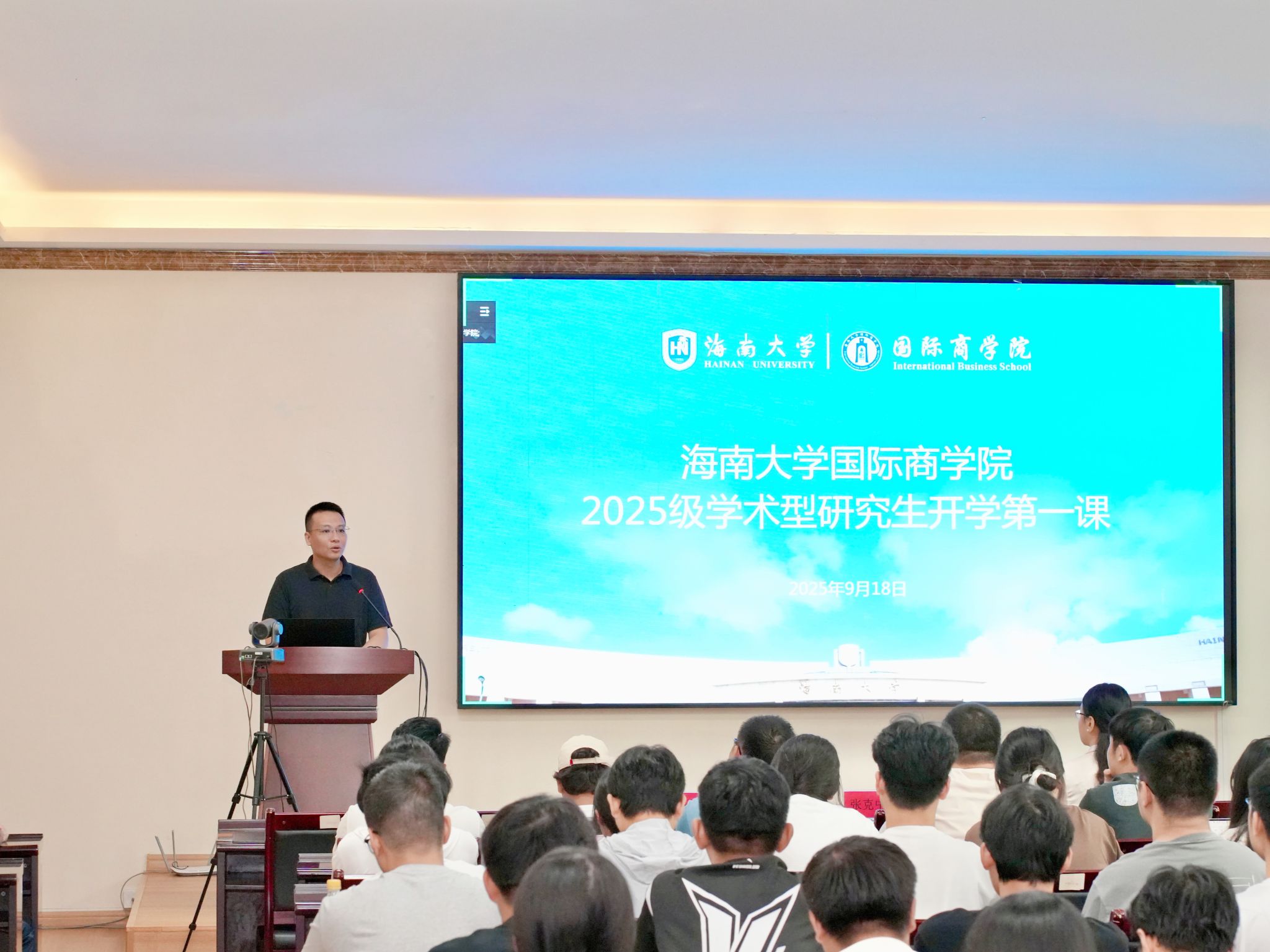 张克中首先欢迎2025级学术型研究生加入国际商学院大家庭。他指出,学院要在大数据和人工智能的背景下,培养懂经济、善管理的高级人才。他向同学们提出三点建议:一要充满激情,对学术保持好奇心;二要做行动的巨人,勤学好问,做好学术;三要培养沟通能力,特别要加强面对面沟通,主动参加学院举办的学术活动、老师举办的研讨会等,提升学术能力。同时他勉励大家坚守学术初心,学会“坐冷板凳”,在坚持中收获不一样的成果。他坚信大家来到海南是人生中正确的决定,因为选择海南,就是选择拥抱自贸港的浪潮。