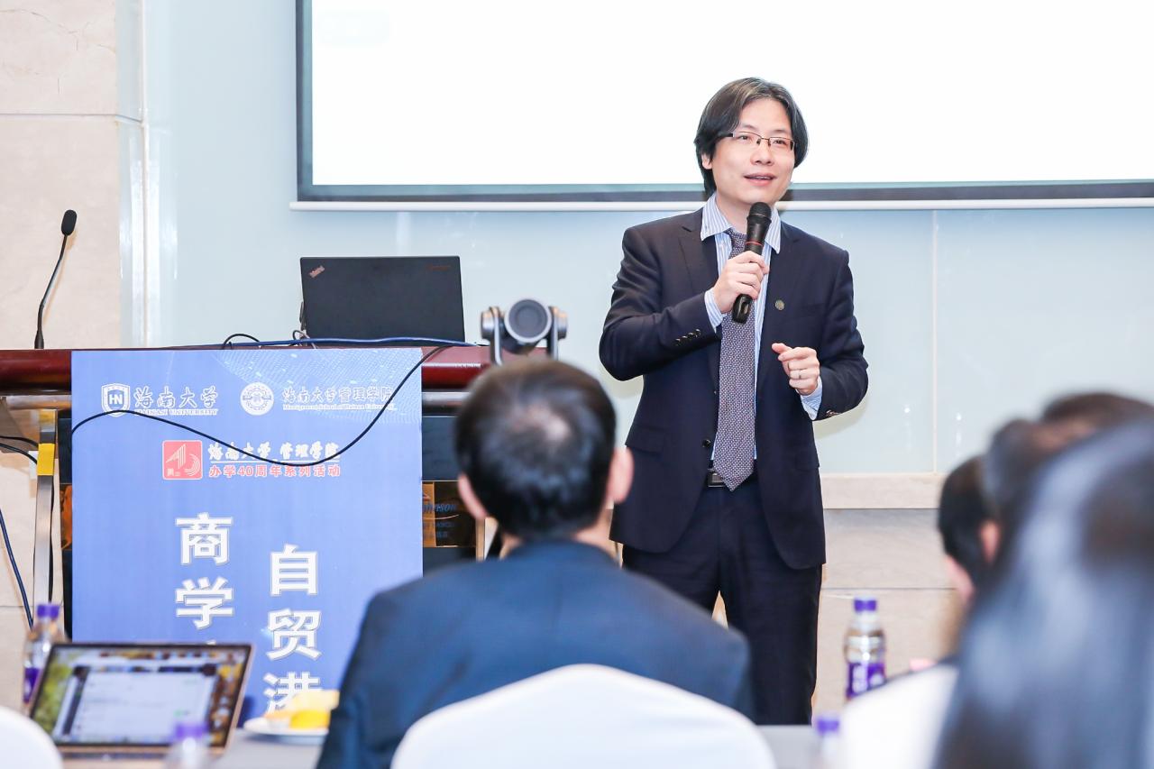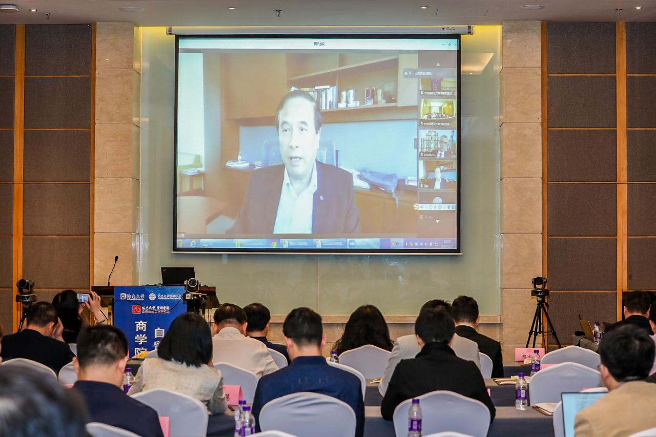 此次论坛获得了华南区域许多优秀兄弟院校以及国内外知名学者的大力支持,中山大学管理学院院长王帆教授、浙江大学王重鸣教授、深圳大学管理学院院长李丽教授、暨南大学管理学院院长黎文靖教授、广西民族大学管理学院院长马璐教授、香港浸会大学管理学院院长Ed Snape教授、澳门城市大学商学院院长Jose Alves教授、香港中文大学商学院院长周林教授等知名专家学者或莅临现场或通过线上会议发表了关于自贸港建设和商学院发展的精彩演讲。