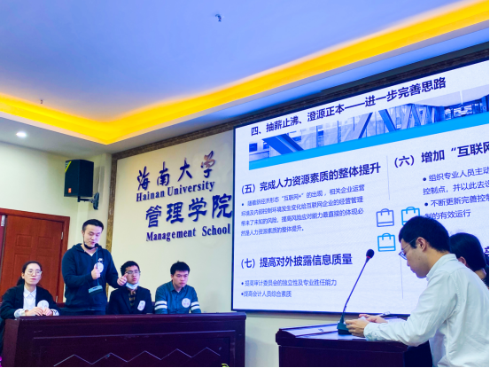 2021年1月16日上午,在海南大学社科楼B112学术报告厅举行了海南大学管理学院首届MPAcc学生案例大赛校园赛决赛,2019级与2020级会计硕士学生16支队伍参赛。学院领导赵达副院长出席并讲话。同时邀请了湖南大学工商管理学院肖美英教授、MPAcc教育中心主任郭慧芳、会计系曾春华、余灼萍和李丽五位老师共同担任大赛评委,会计系沈琳、徐知斌、吴顺祥、胡珺等老师参会指导。