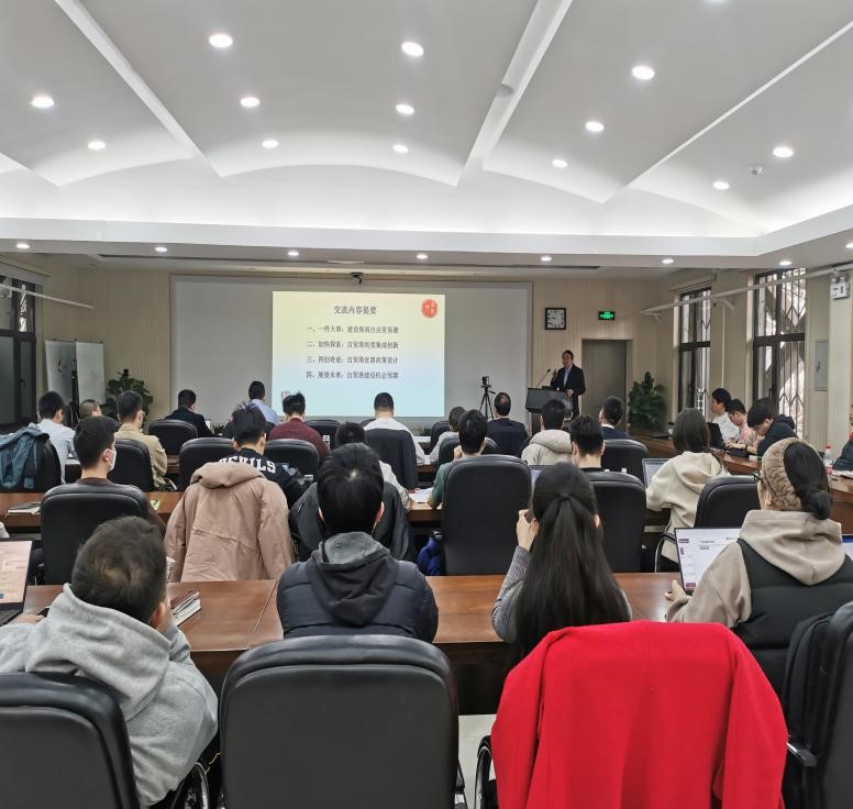 随后,傅国华教授作为中国科学院大学“创新发展论坛”今年首期邀请专家,为教职工做“海南自贸港建设的机会与挑战”学术报告。国家杰出青年项目陈凯华研究员主持论坛,对学术报告给予高度肯定。