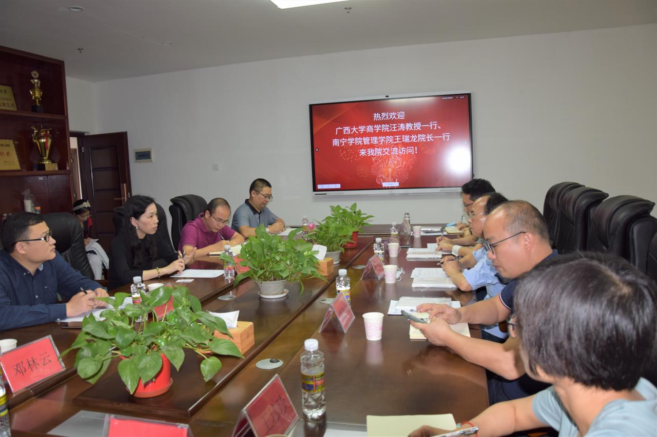 海南大学管理学院、广西大学商学院、南宁学院管理学院分别介绍了各自学院的基本情况,并围绕专业建设、制度建设、文化建设、实验室建设等方面内容展开交流,表示之后将继续加强交流合作,共同促进发展。