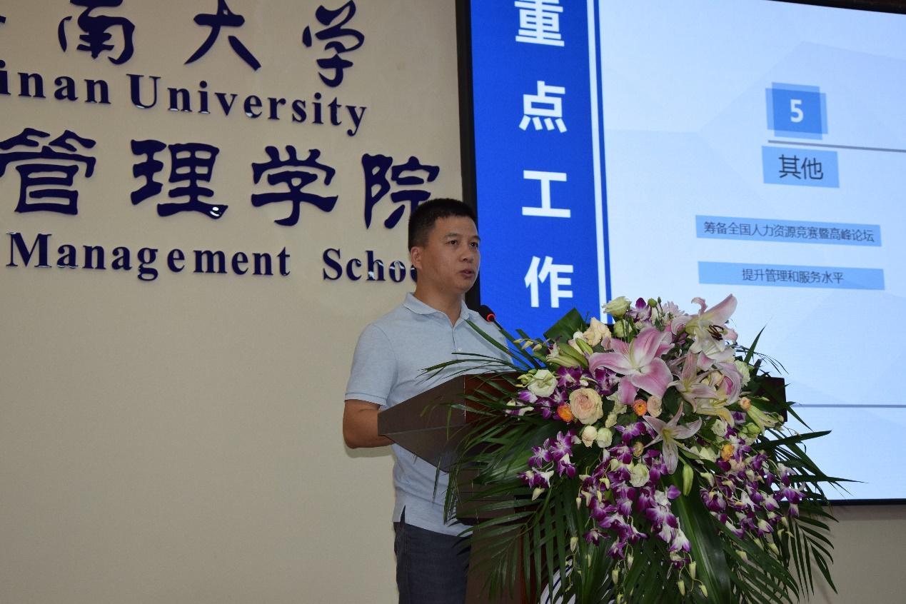 唐宁玉院长汇报了学院2021年上半年重点工作进展情况,学院在人才培养、学科建设、科学研究、地方服务、学生工作以及国际合作等方面都取得了显著的成绩。唐宁玉院长同时部署了期末和暑期重点工作,强调学院将配合学校,做好学分制、书院制、创新协调中心建设这三大改革,加强专业和学科建设,不断提高管理与服务水平。