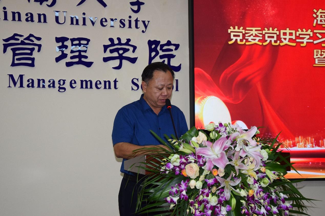 2021年7月13日下午,海南大学管理学院党委党史学习教育领导小组(扩大)会议暨暑期工作部署会议在社科楼B112学术报告厅召开。全体院领导及教职工出席会议,学院党委易振副书记主持会议。
