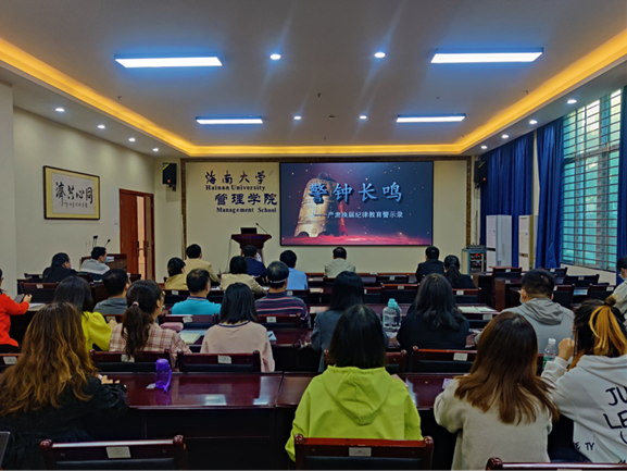 2021年11月24日下午,管理学院党委于社科楼B112开展警示教育活动,组织观看警示教育片《警钟长鸣——严肃换届纪律教育警示录》。学院领导班子成员,各党支部书记、支部委员,各系、各办(中心)主任参加。