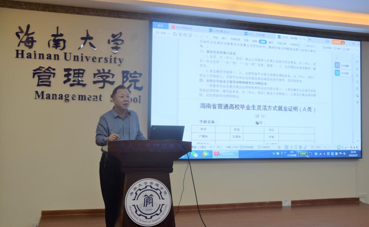 张德生通报了教育部关于高校教师师德失范行为的相关指导意见,并对学院就业工作作出安排部署,具体介绍了2022届毕业生就业工作方案以及毕业生就业工作指南。