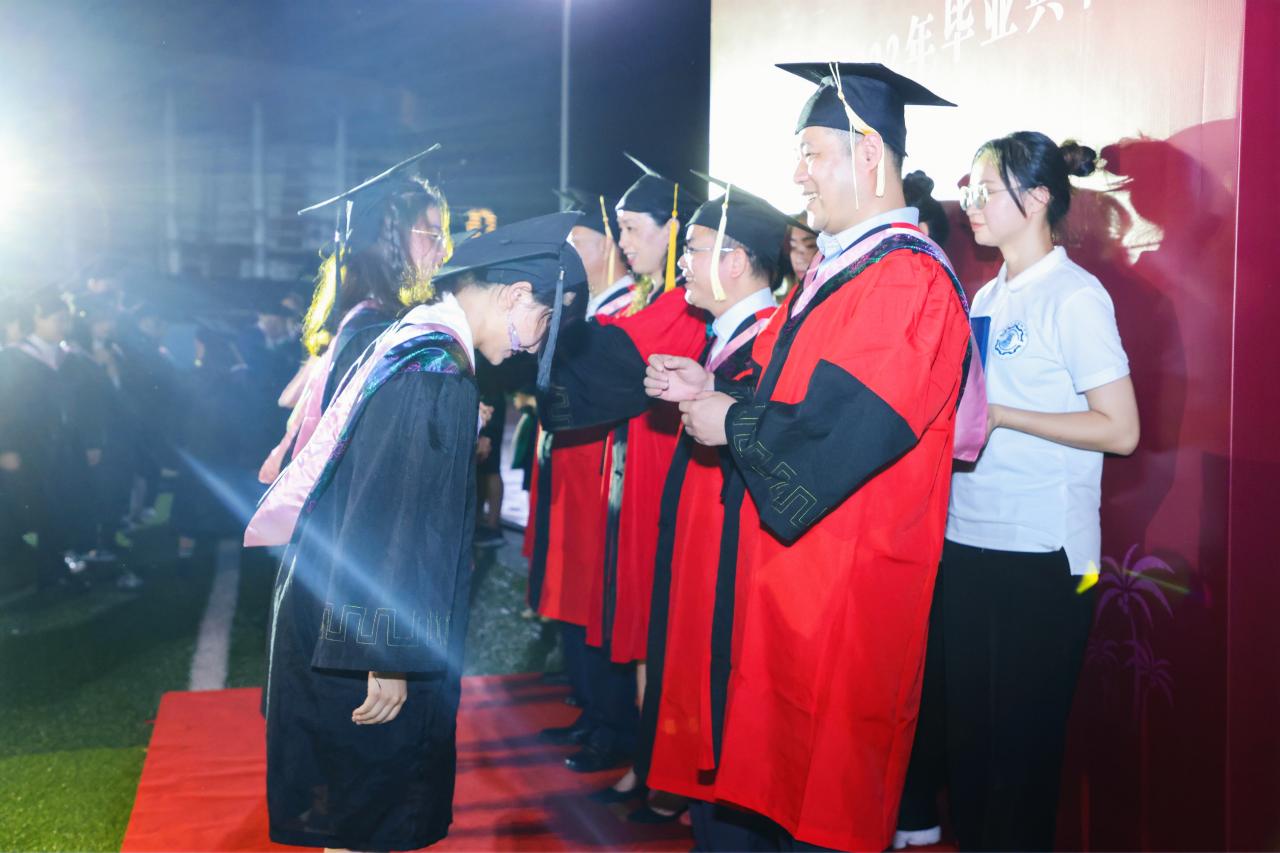 2022年6月19日晚上,海南大学在第二田径运动场举行2022年毕业典礼暨学位授予仪式。仪式第三阶段,管理学院在分会场举行2022届毕业生学位授予仪式暨2022年“盘石·优秀学子深造奖学金”颁奖仪式。
