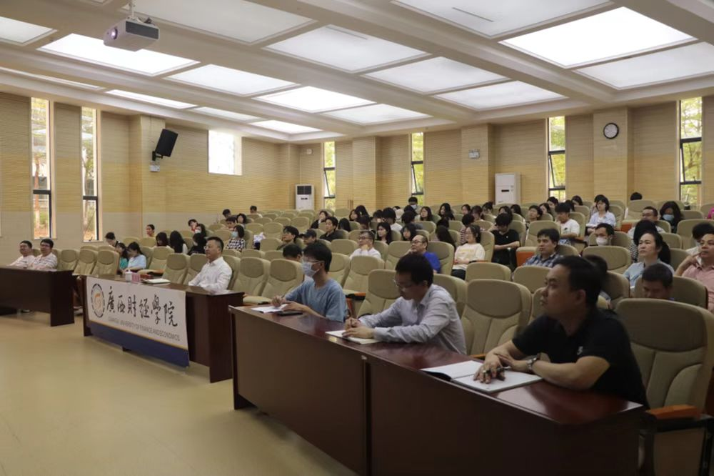 3月24日上午,傅国华教授为广西财经学院经济与贸易学院师生作《数业社会,大学向何处去》主题讲座,广西财经学院副校长夏国恩教授主持。傅国华教授由农业、工业演进进程创新提出 “数业”概念,构建了 “三数理论”,以数业经济、数业社会、数业文明为框架,提出了数字经济是将数源生产为数品,通过数业平台进行交易、消费与结算创造经济财富的一种新经济。