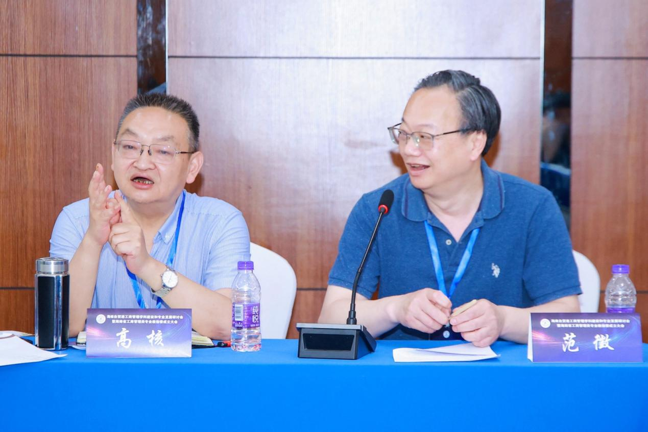教育部工商管理类专业教学指导委员会委员、上海外国语大学国际工商管理学院首任院长范徵教授,教育部工商管理类专业教学指导委员会委员、云南大学工商管理与旅游管理学院原副院长高核教授对海南大学工商管理专业建设提出了宝贵的意见。范徵教授提出,应该要深入挖掘管理学院工商管理专业设置的特色,提出自贸港绿色发展,人力资源管理国际人文理念建设等;高核教授提出加快工商管理专业研究生一流课程建设的步伐,以及围绕工商管理专业进行自贸港的研究,并可联动其他研究自贸港的高校进行深入合作。