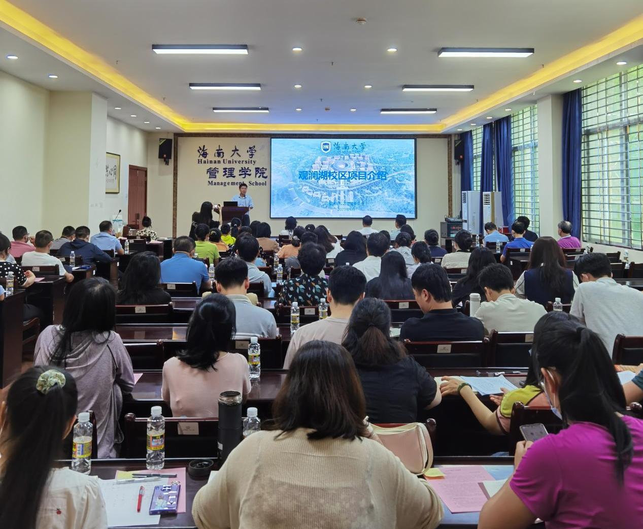 2023年5月15日下午,海南大学管理学院在社科楼B112学术报告厅召开观澜湖介绍会。海南大学观澜湖校区管委会主任李艳荣、管理学院院长唐宁玉、学院党委书记邢谷川及学院其他领导班子成员出席会议。学院党委书记邢谷川主持会议。