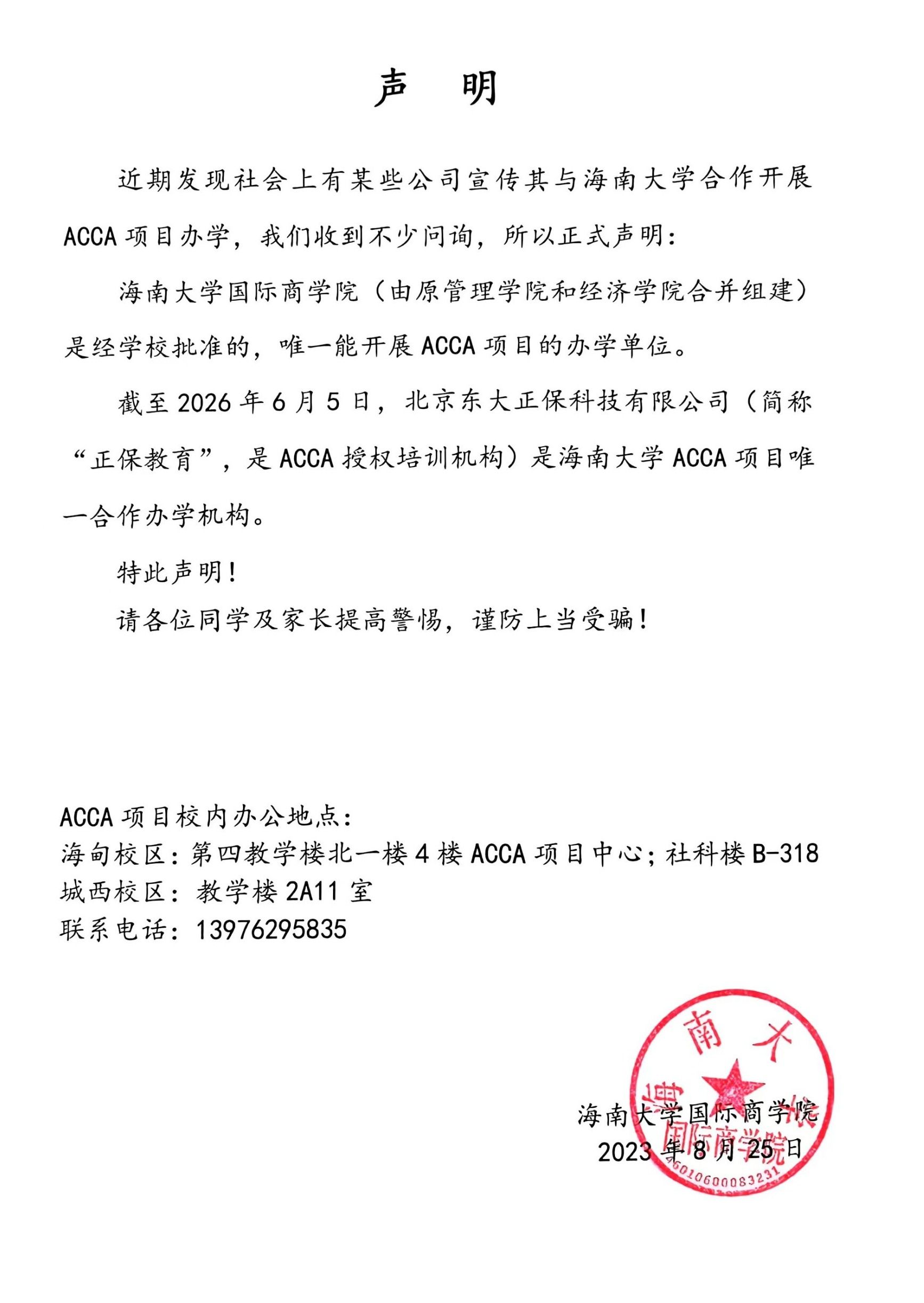 伟德bv1946官网关于ACCA合作办学机构的声明