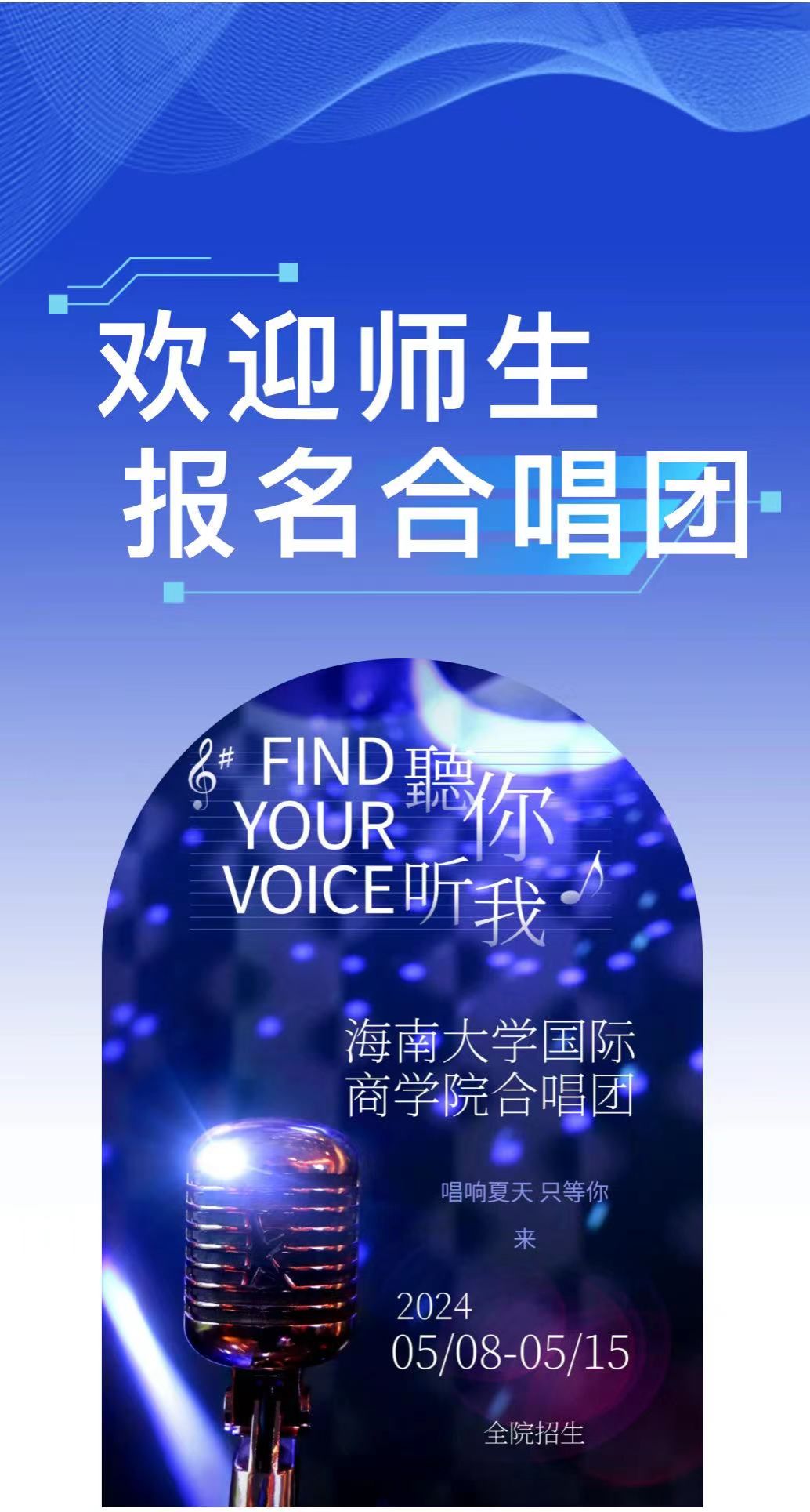 2. 能够保证一定的排练时间,积极参与合唱团的活动。