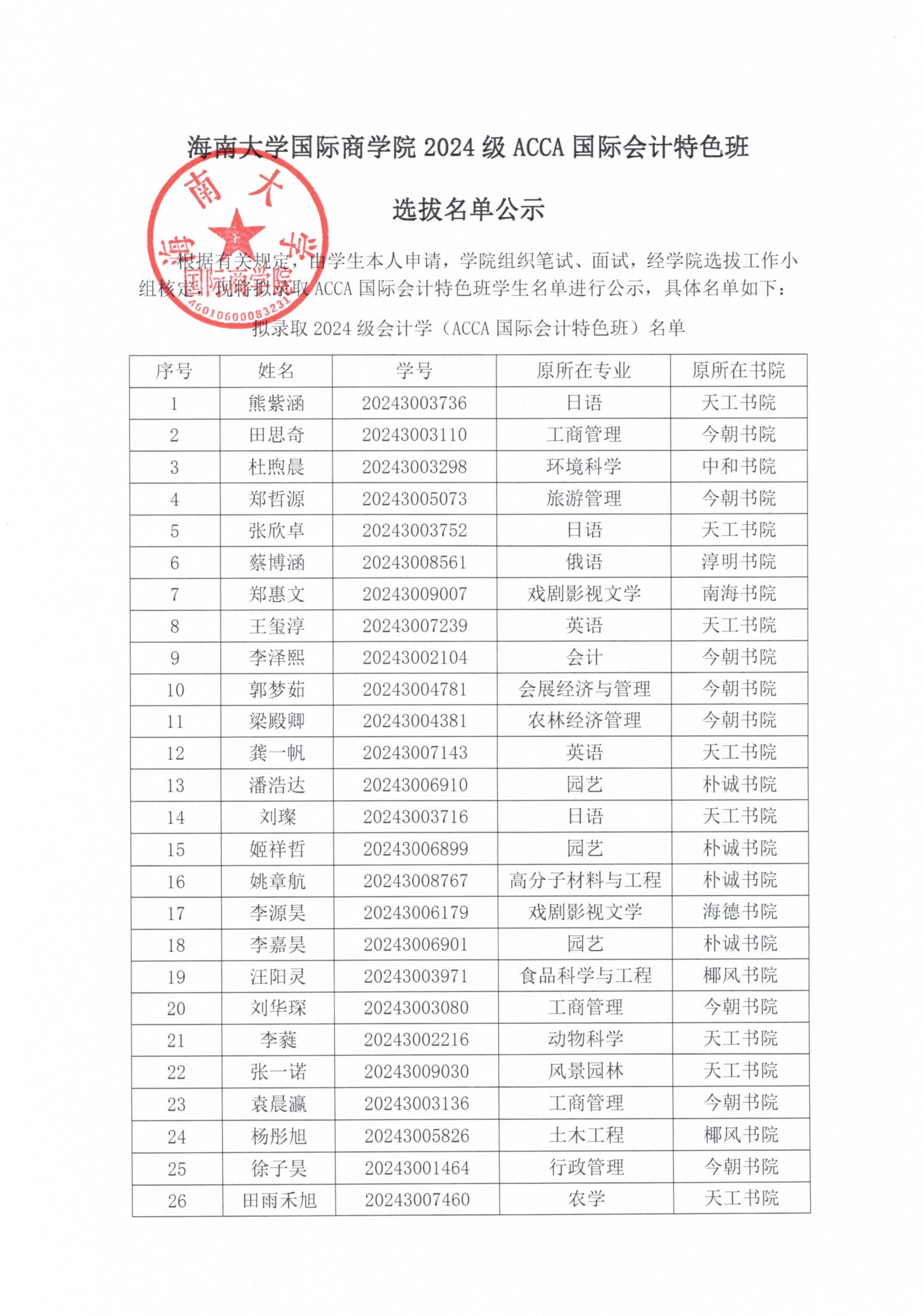 伟德bv1946官网2024级ACCA国际会计特色班选拔名单公示