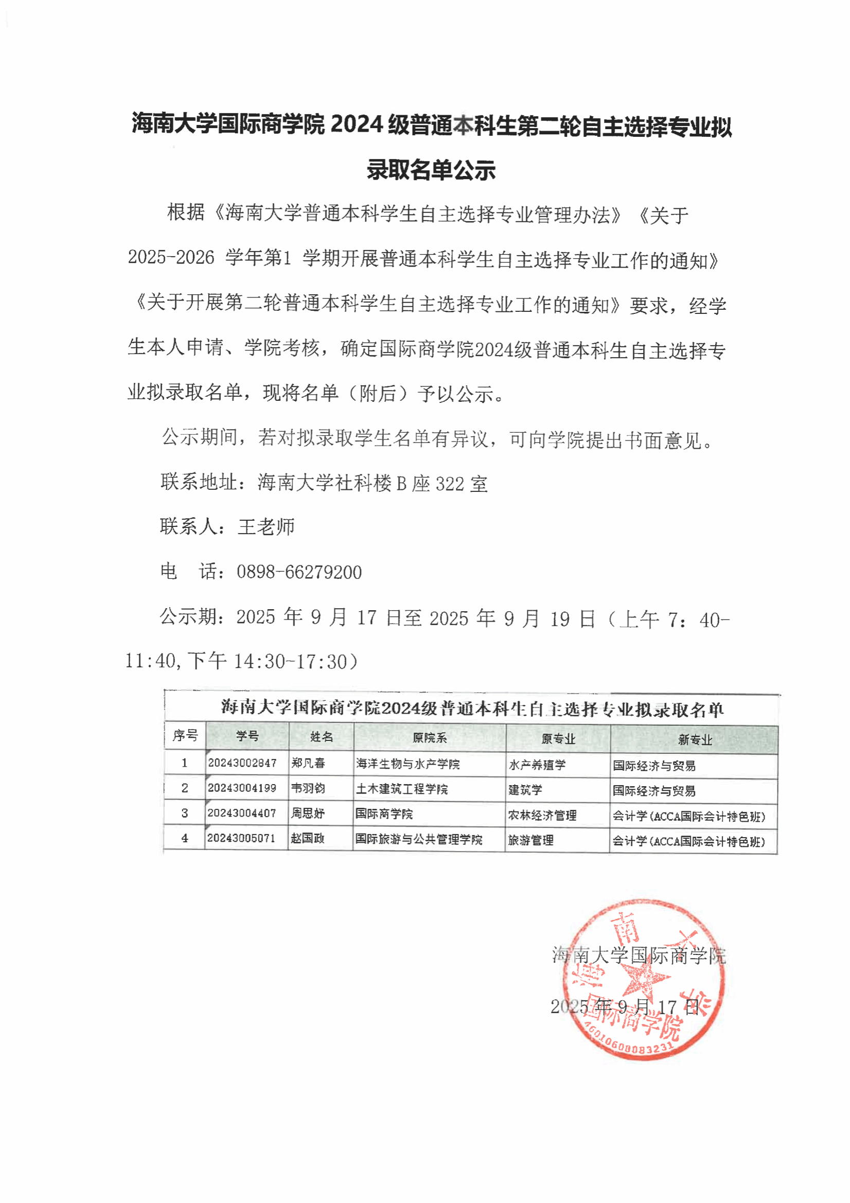 伟德bv1946官网2024级普通本科生第二轮自主选择专业拟录取名单公示