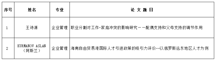 海南大学管理学院2022年下半年硕士学位论文答辩公告