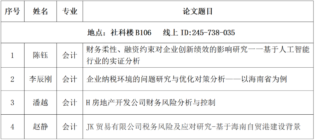 海南大学管理学院2022年下半年会计硕士(全日制、非全日制)学位论文答辩会公告
