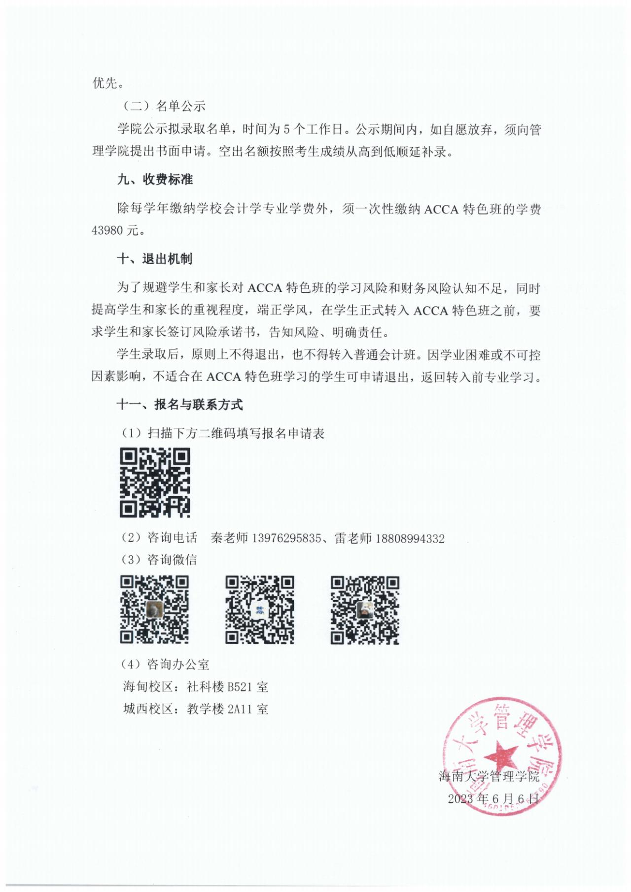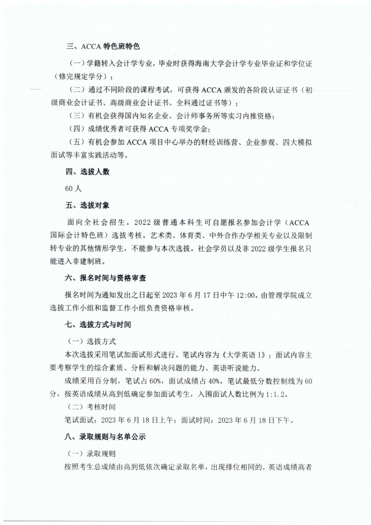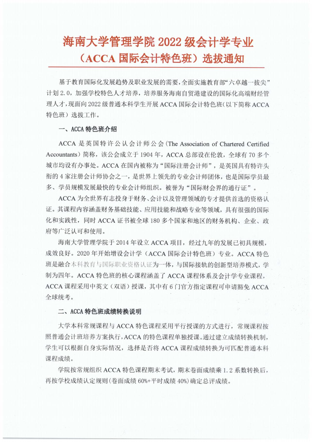 海南大学管理学院2022级会计学专业(ACCA国际会计特色班)选拔通知