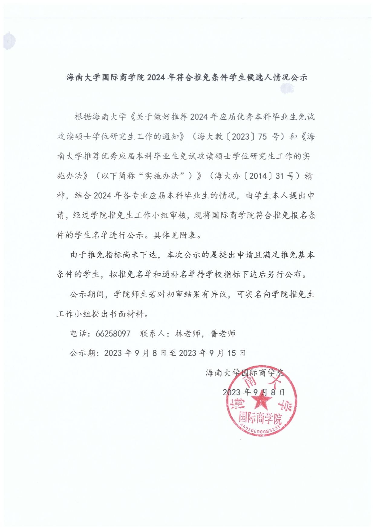 伟德bv1946官网2024年符合推免条件学生候选人情况公示