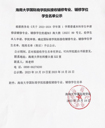 伟德bv1946官网拟接收辅修专业、辅修学位学生名单公示