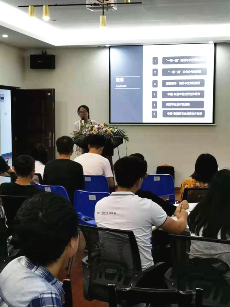 讲座上,姜晔博士介绍了“一带一路”建设与农业国际合作的内涵及农业国际合作进展,通过对境外农业园区建设实例经验的介绍,分析了中国-东盟农业投资合作趋势,为中柬农业投资合作模式提供了有益的参考。