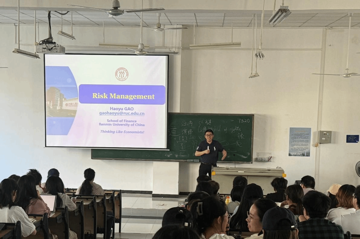 11月2日上午,高昊宇教授在海南大学海甸校区第五教学楼312室,为我院金融学专业2022级本科生讲授了“金融风险管理”课程。高教授结合国家相关政策和战略,阐述了学习金融风险管理课程的重要性,并通过金融机构风险管理的真实案例,对金融风险管理学科中的复杂理论知识进行了深入浅出的讲解。高教授的授课加深了同学们对金融风险管理课程的理解,激发了大家对金融风险管理理论的学习热情。