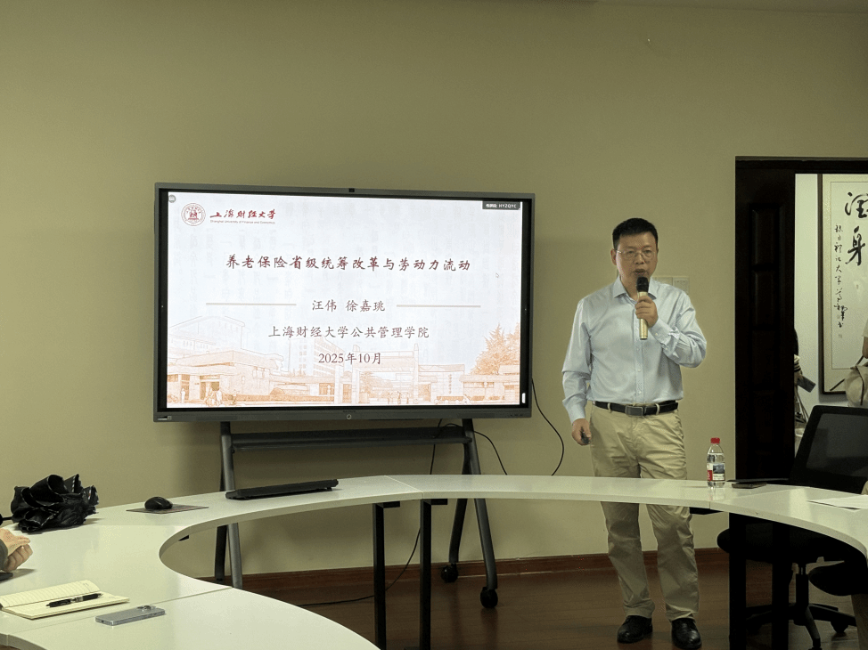 汪伟教授以人口结构变迁和劳动力市场发展趋势为背景,探讨养老保险省级统筹改革对劳动力流动的影响。研究基于世代交叠模型和双重差分法发现,改革总体上抑制了省内跨市流动,提高养老金可携带性促进流动,而待遇统一削弱工资激励。在互动交流环节,参会师生围绕模型设定、数据识别与分析等问题进行了深入探讨。汪伟教授结合团队研究经验给予详细回应,并分享了其在劳动经济学领域长期研究的思考路径与方法论启示。