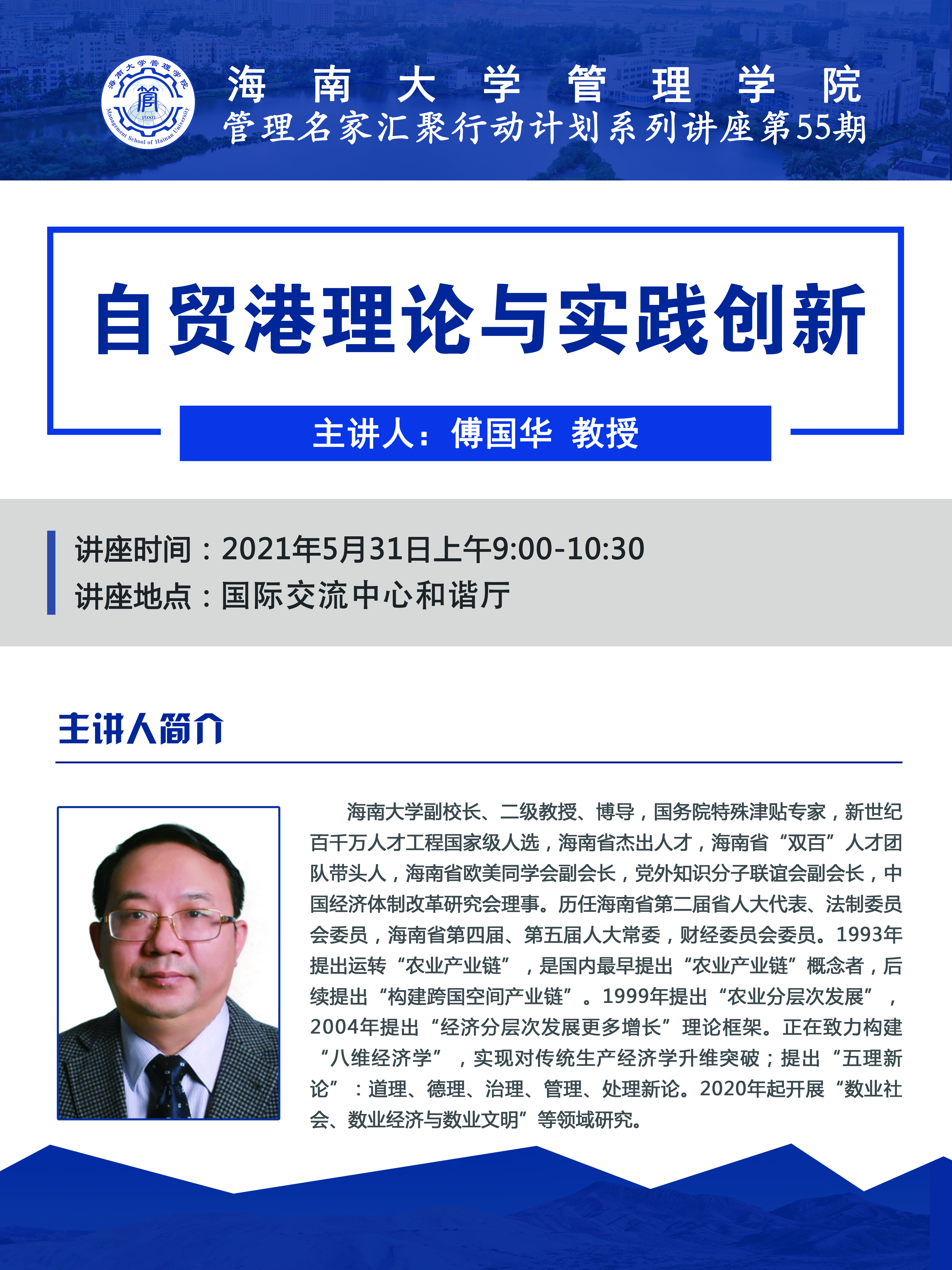 管理名家汇聚行动计划系列讲座第55期: 海南大学副校长傅国华教授应邀莅临我院讲学