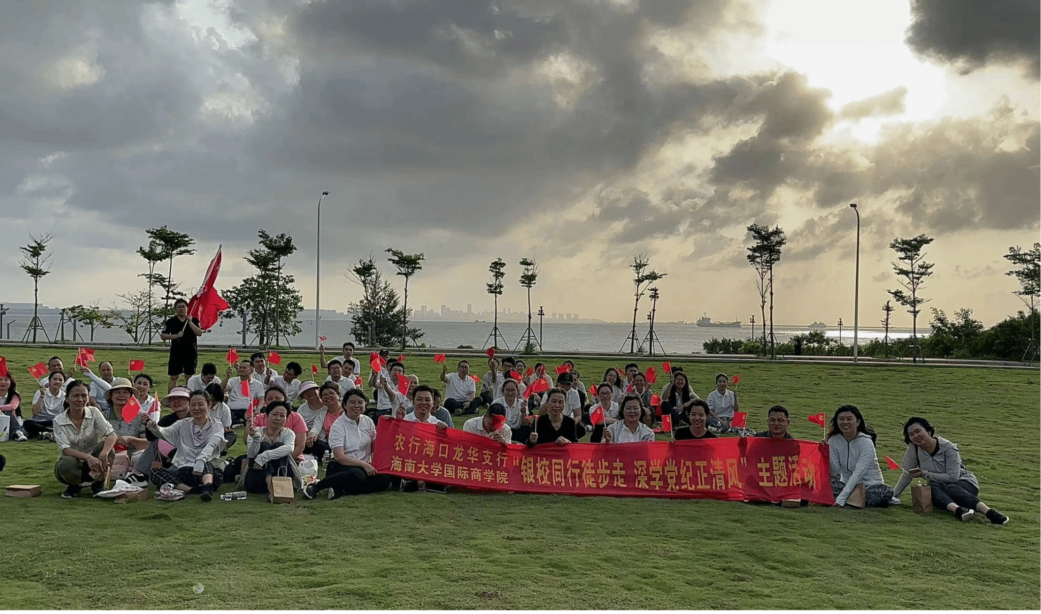 为扎实推进党纪学习教育,充分发挥党建引领作用,5月14日下午,伟德bv1946官网与中国农业银行海口龙华支行联学联建,开展“徒步+党纪学习教育”主题党日活动。