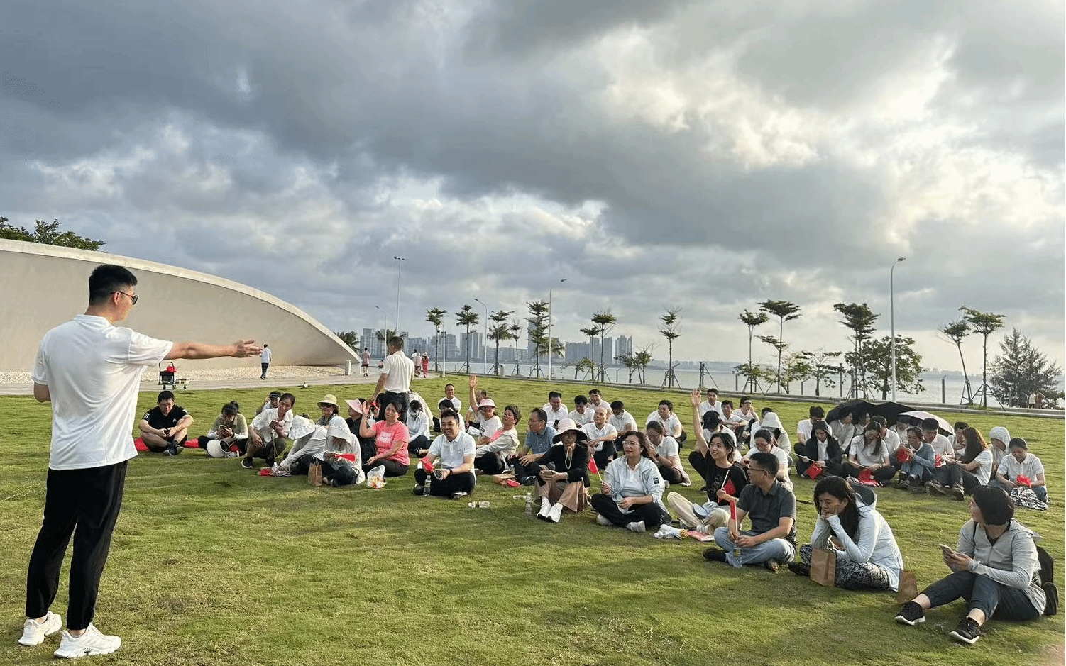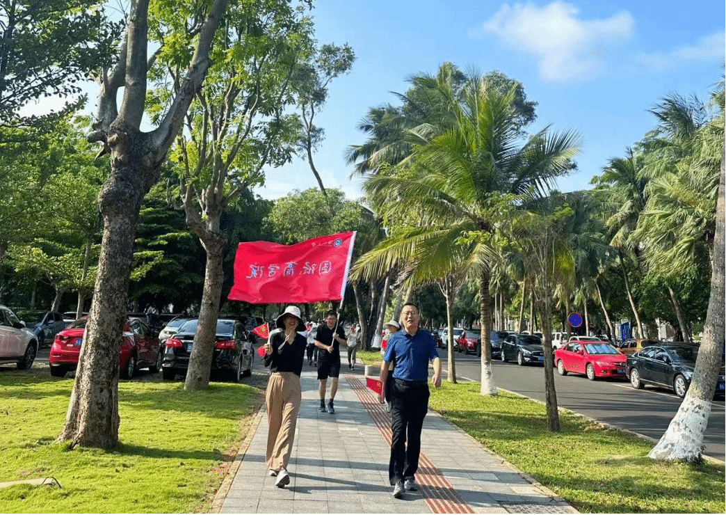 活动伊始,院党委书记南国芳、院长唐宁玉带领部分党员和教师从社科楼出发,步行至海南大学新南门与中国农业银行海口龙华支行团总支汇合,共同前往目的地天空之山。