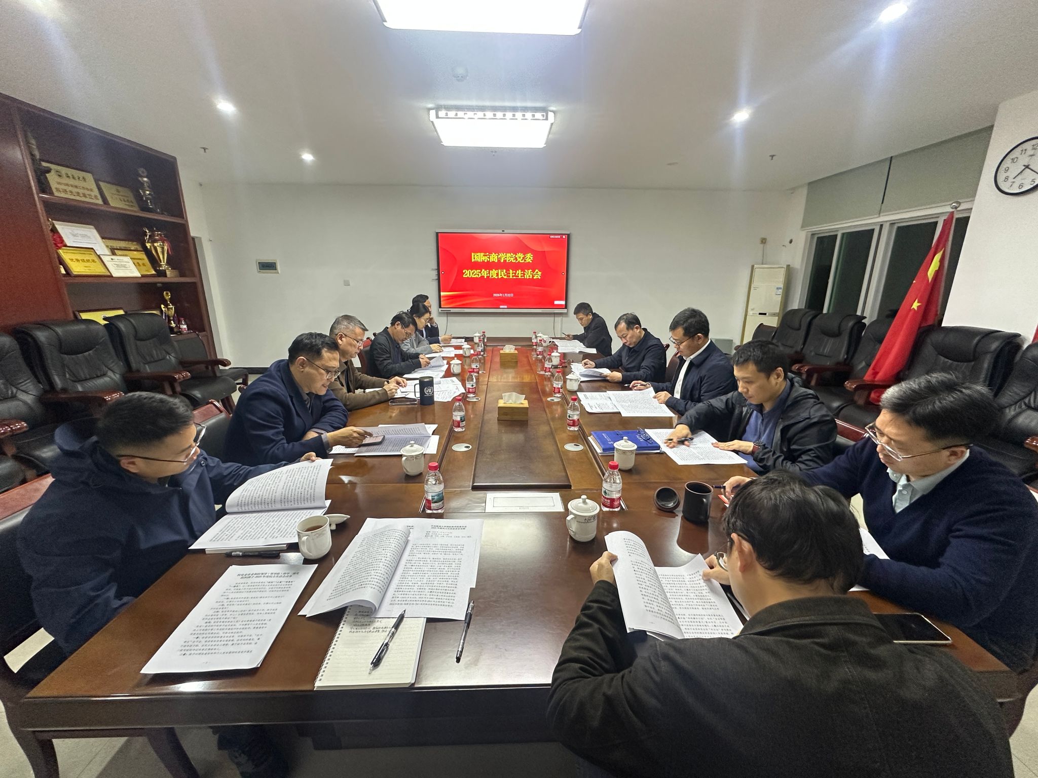 1月22日晚,国际商学院在社科楼B314会议室召开2025年度民主生活会。校党委常委、副校长李步洪到会指导,人事处处长刘佳扣陪同。学院党委委员陈琛、王静、许能锐、付景涛、赵达、童泽林、孙鹏、刘扬雄、张应武参加会议,海南大学副校长、国际商学院院长(兼)张克中列席会议。会议由学院党委书记陈琛主持。