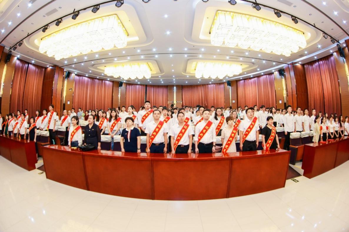 大会在庄严的国歌中拉开帷幕。面对庄严的党旗,全体起立,学院党建组织员李子昂领誓,新发展党员庄严宣誓,老党员重温入党誓词。