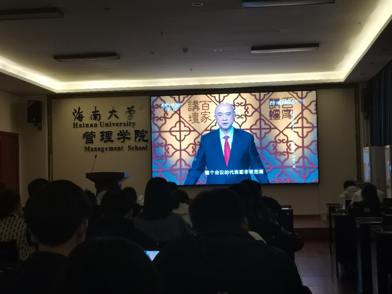 2021年12月1日晚,海南大学管理学院党委于社科楼B112组织观看中央电视台科教频道特别节目《党史故事100讲:国共合作及五卅运动》,各支部党员到场参加。