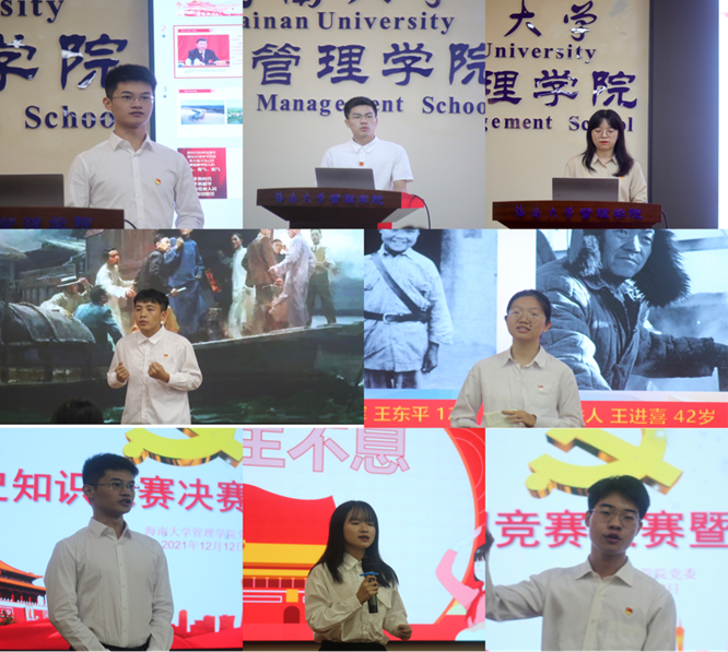 2021年12月12日上午,管理学院党委于社科楼B112举办了党史知识竞赛,比赛以演讲的形式开展,主题为《学习党的光辉历史和十九届六中全会精神》。计算机科学与技术学院万隽老师、管理学院陈晓霖老师到场参评。
